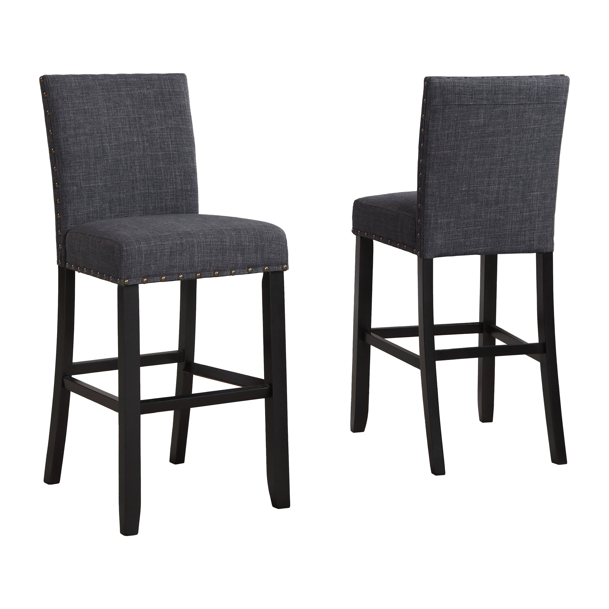 Biony Fabric Bar Stools with Nailhead Trim, Set of 2, Grey
