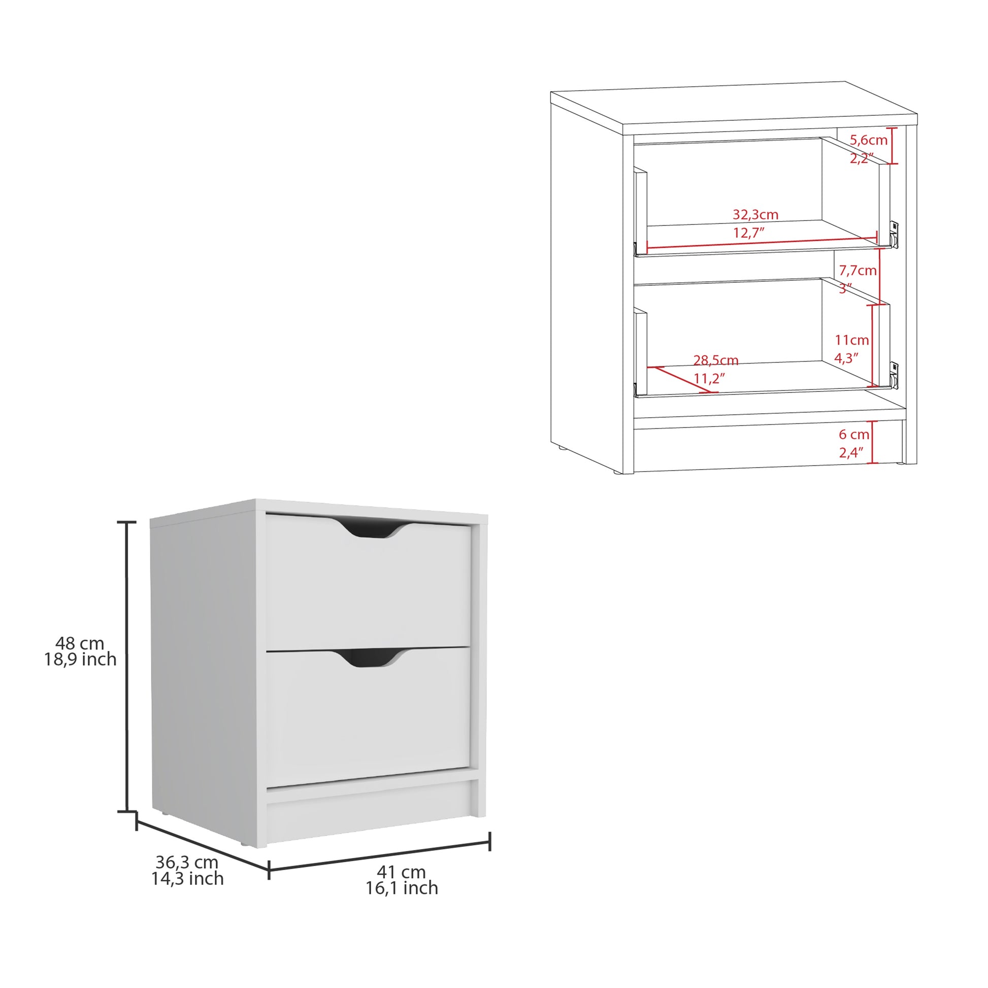Basilea 2 Drawers Nightstand , End Table, Side Table Pull Out System -White