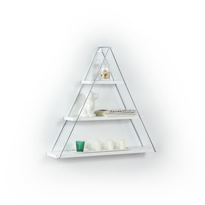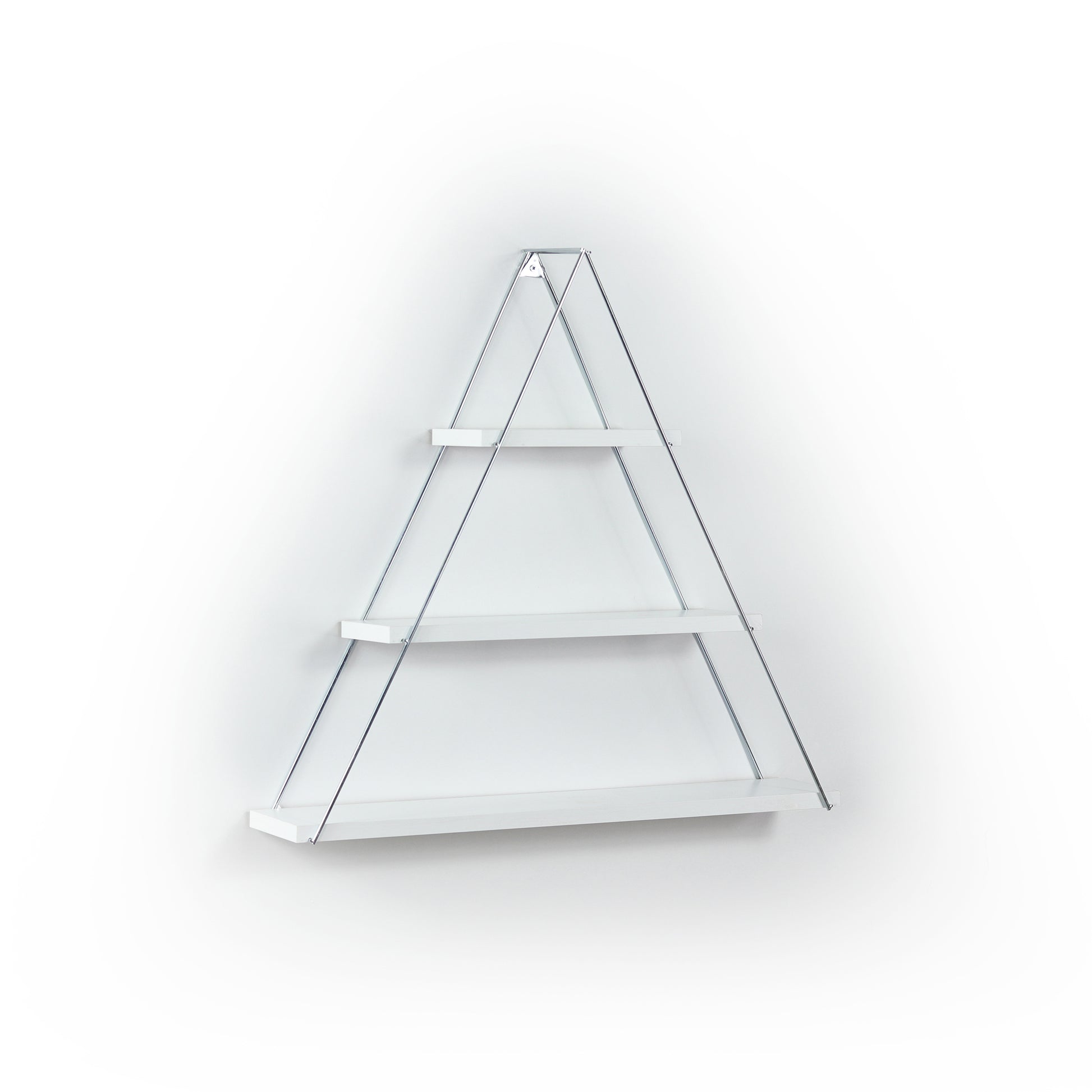 Moset Floating Wall Decor Wall Mounted Rustic Decorative Hanging Metal Bracket Triangle Shelf for Books, White/Chrome
