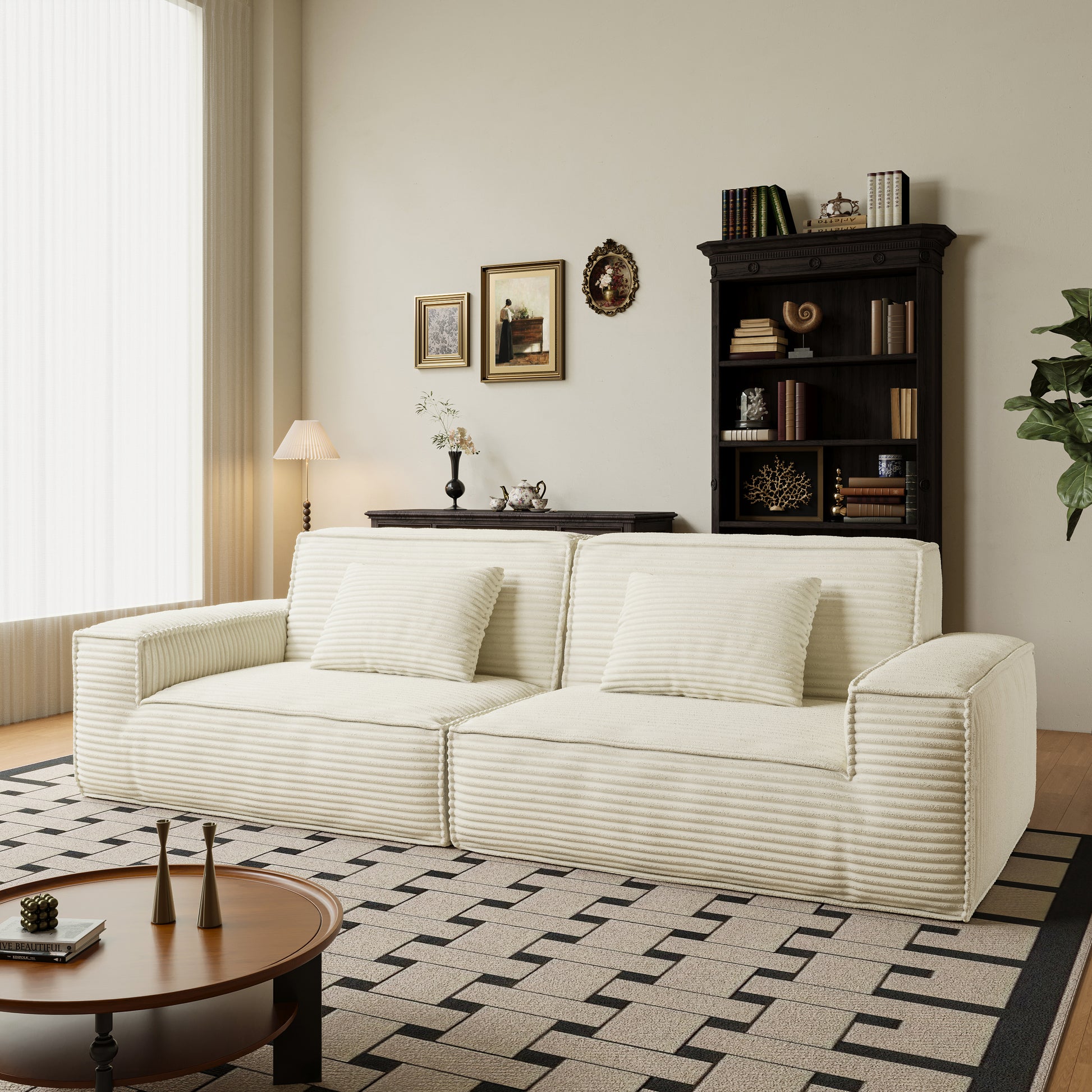 - Compression Sofa with wider armrests, deeper seat depth, and raised backrest provide a more comfortable seating experience. The small pillows included for free can be cradled in your arms or leaned against your back, allowing you and your family to relax even more. The super wide sofa gives every part of your body plenty of space to relax.
