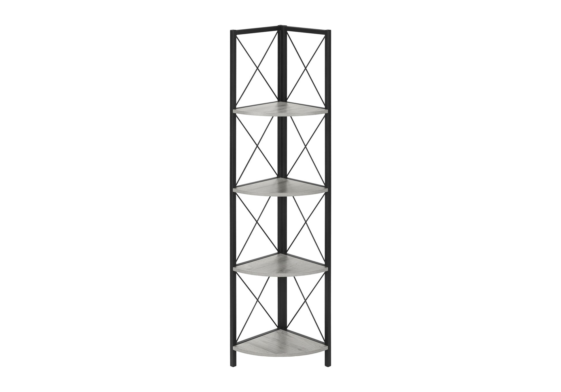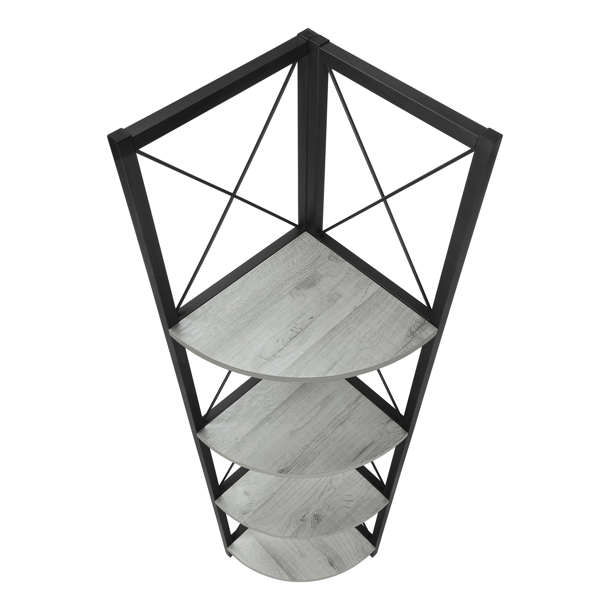Bookshelf, Bookcase, Etagere, Corner, 4 Tier, 60"h, Office, Bedroom, Grey Laminate, Black Metal, Contemporary, Modern