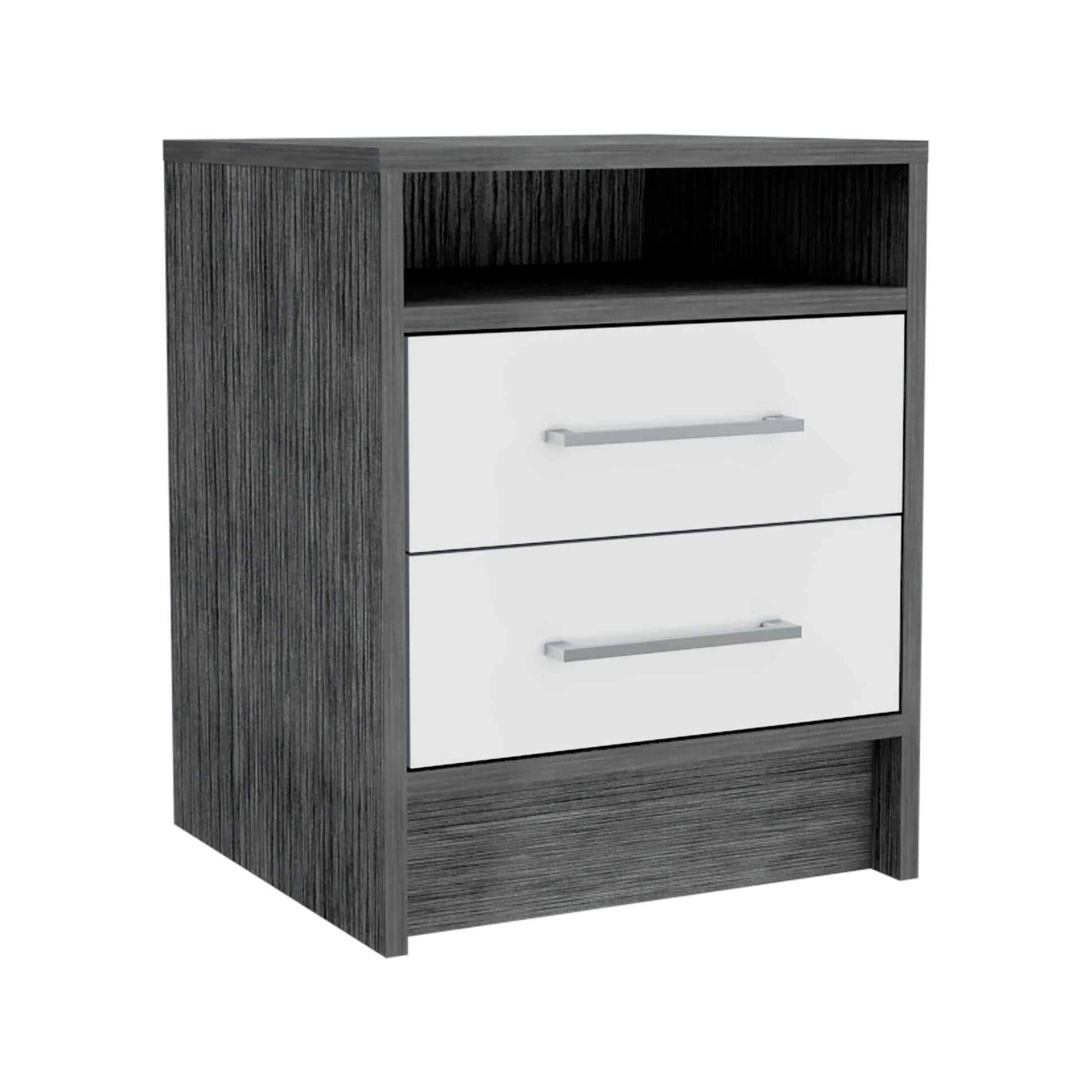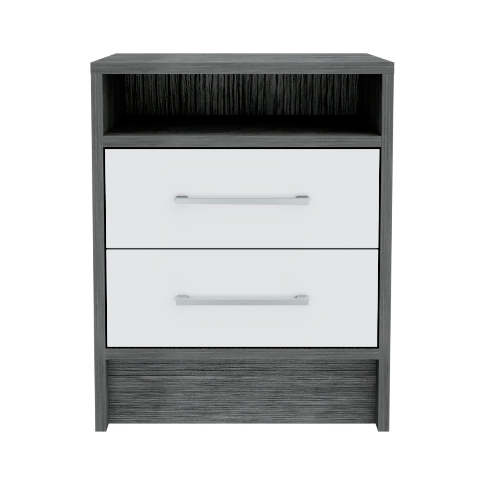 The Philadelphia Nightstand is perfect for your bedroom or living room; this Nightstand is a neat companion to store your personal belongings nest to your bed or sofa. The spacious top is great for placing your books, phone, or decorative items. A shelf below and two drawers are great options for that extra storage space you want next to your bed.