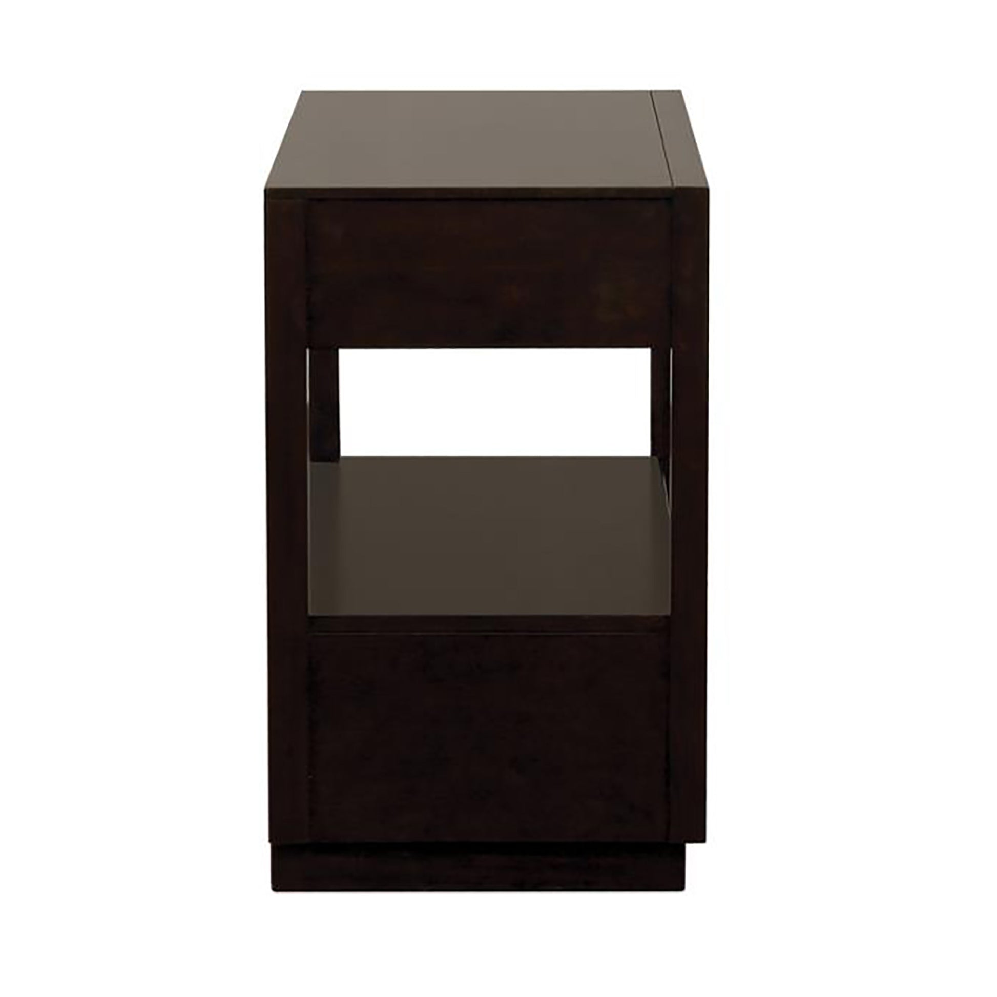 - Featuring a rich and warm smoke peppercorn finish, the nightstand's deep hues contribute to a bold visual statement