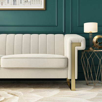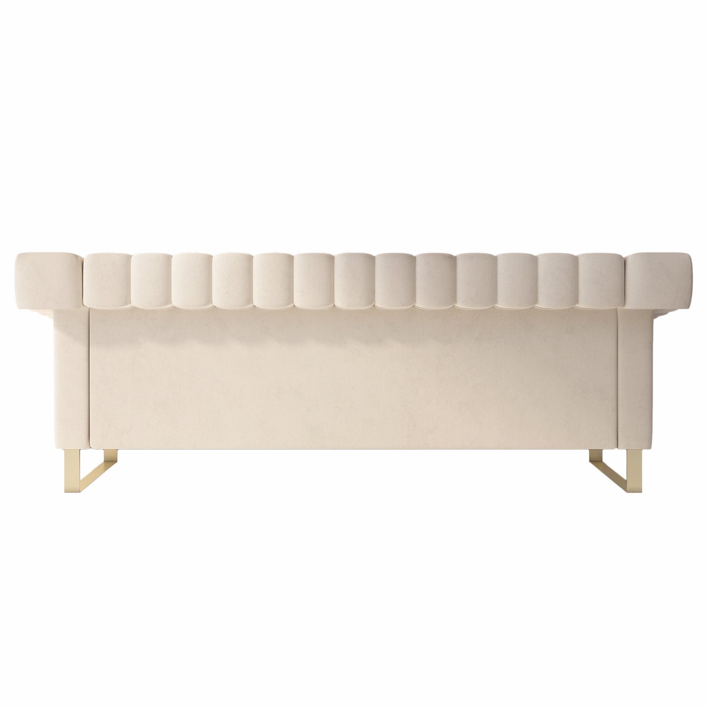 FX-P81-CW2 SOFA Modern Cream Velvet Sofa with Gold Accents - Sleek Channel-Tufted Upholstery, 3-Seat Couch for Living Room and Office Decor(TEMU Suitable)