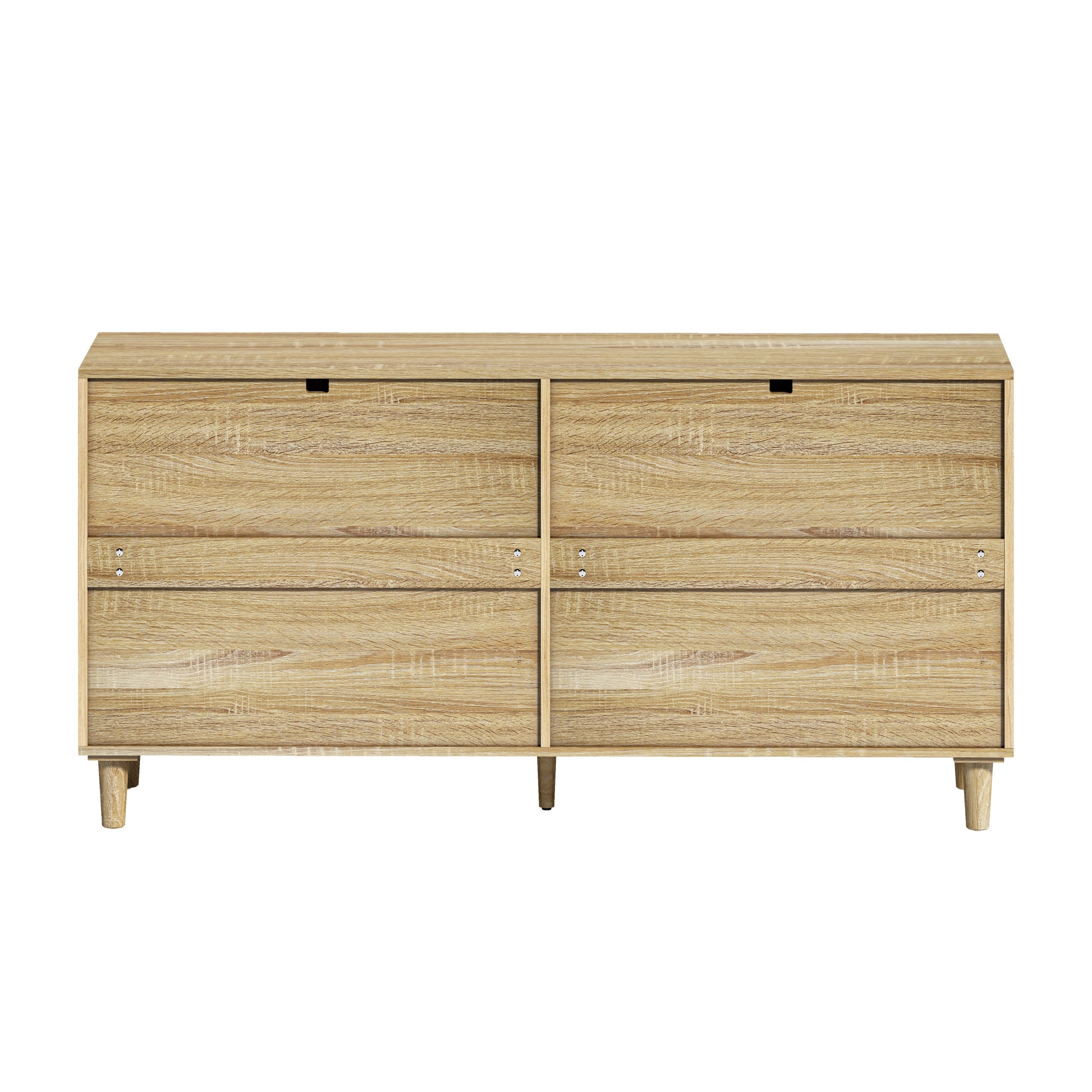 59" Rattan Dresser with Drawers, 6 Drawer Dresser for Bedroom, Clothes Storage Cabinet for Bedroom, Metal Handle&Wood Legs for Hallway, Living Room, Bedroom,Natural