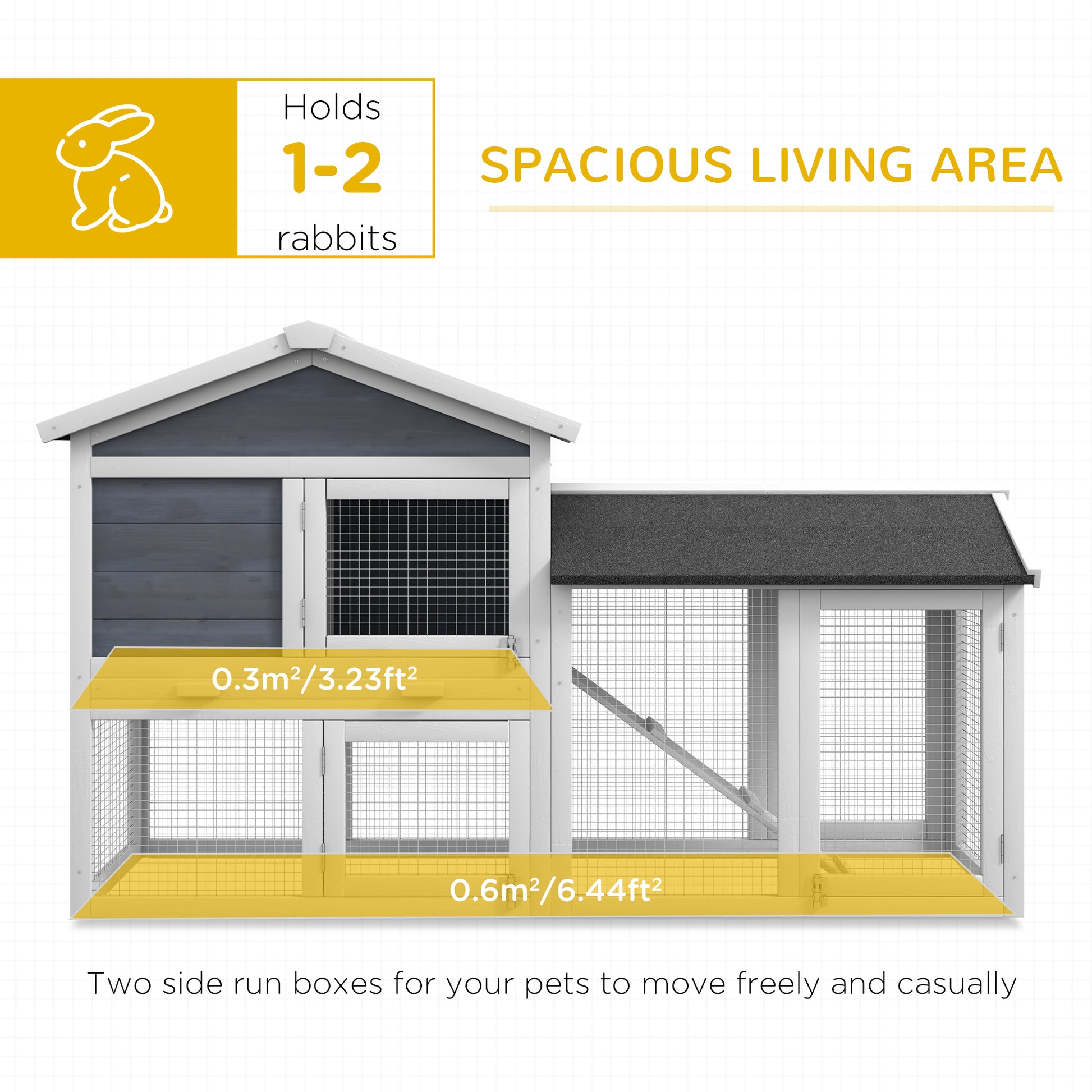PawHut 58" Rabbit Hutch, Wooden Bunny Hutch, Guinea Pig Cage, Small Animal Enclosure with Run Area, Removable Tray, Asphalt Roof, Lockable Doors and Ramp, Gray