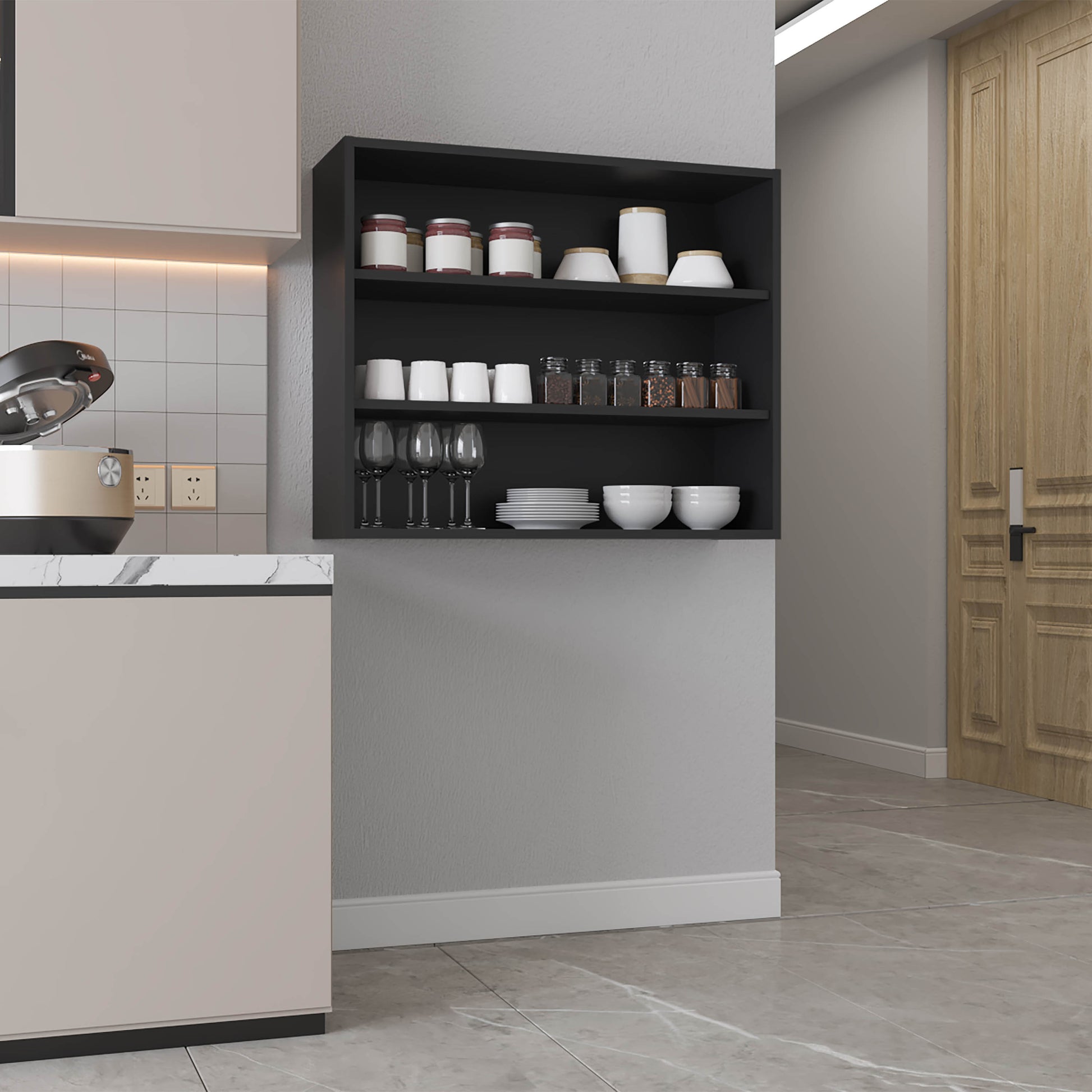 - Perfect for displaying decor or organizing kitchen essentials.