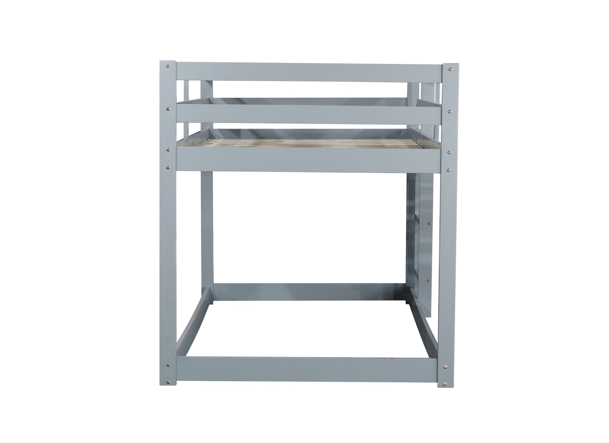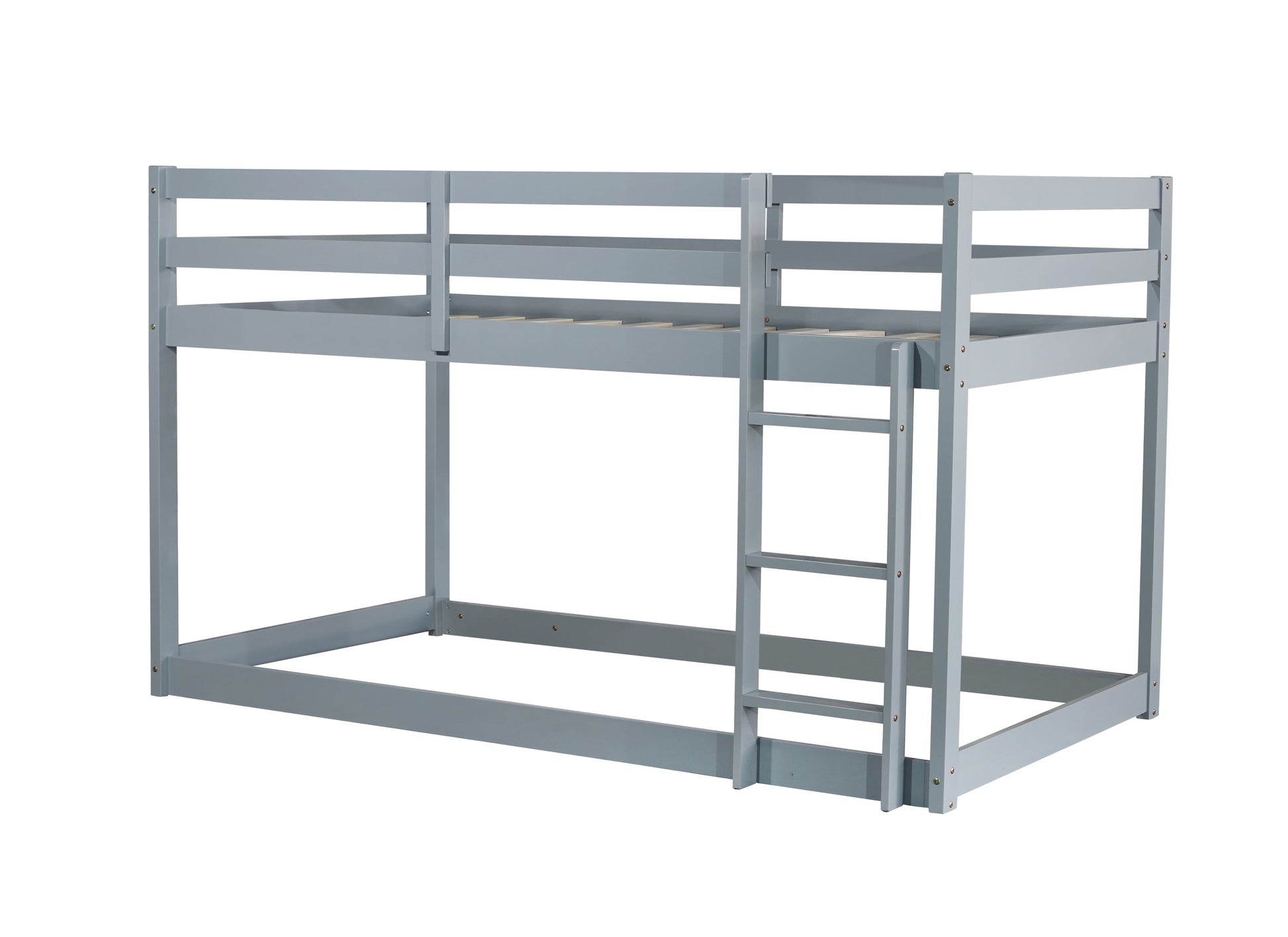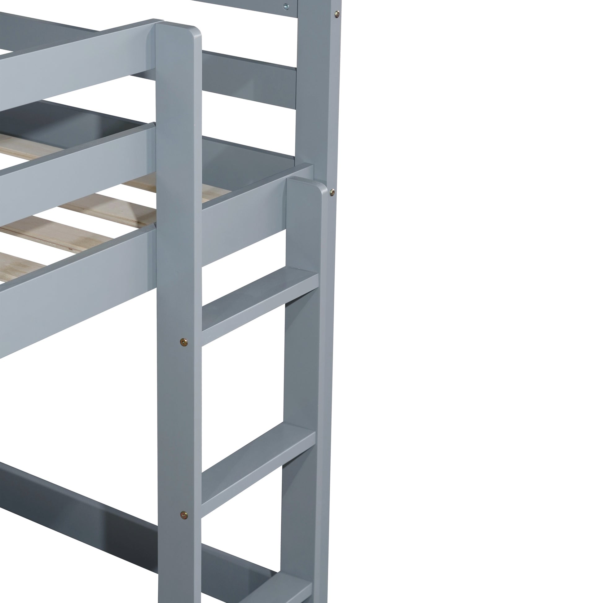 Solid Wooden, Solid Rubber Wooden Twin over Twin Loft Bed with Ladder, with Bed Platform of Strengthened Slats , Grey
