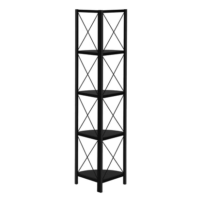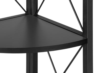 Bookshelf, Bookcase, Etagere, Corner, 4 Tier, 60"h, Office, Bedroom, Black Laminate, Black Metal, Contemporary, Modern