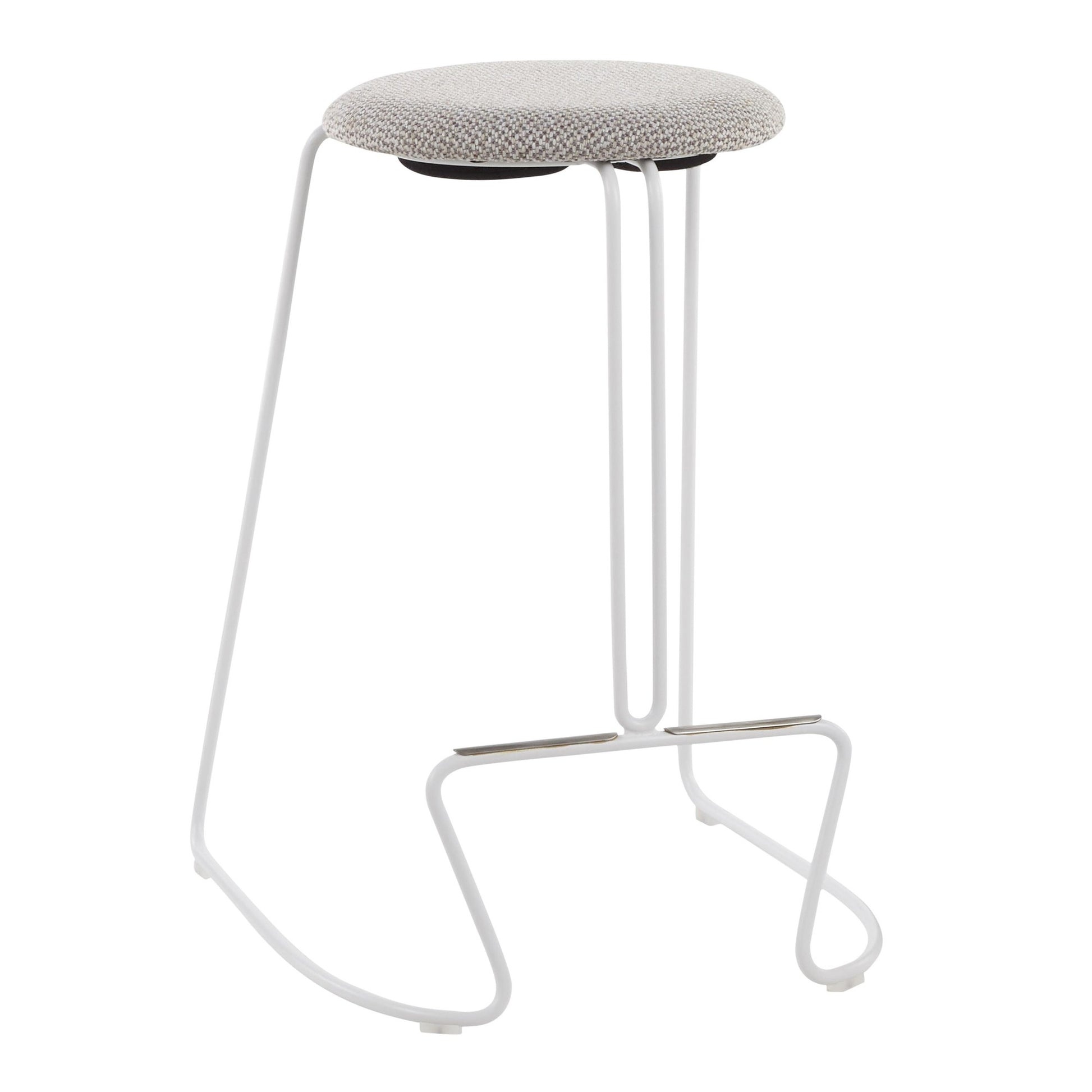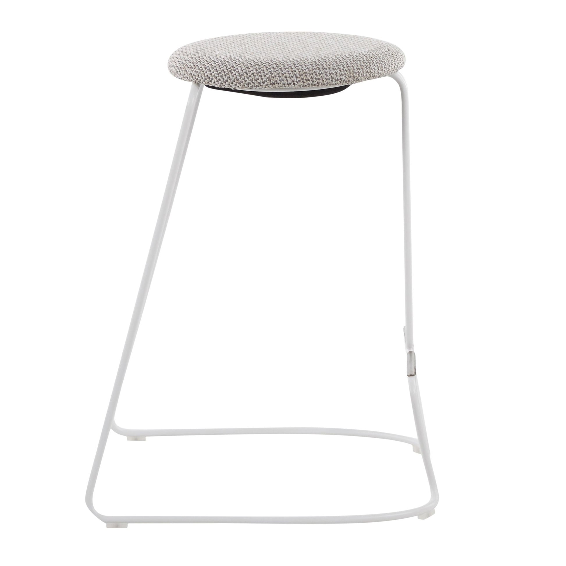 Finn Contemporary Counter Stool in White Steel and Light Grey Fabric by LumiSource - Set of 2