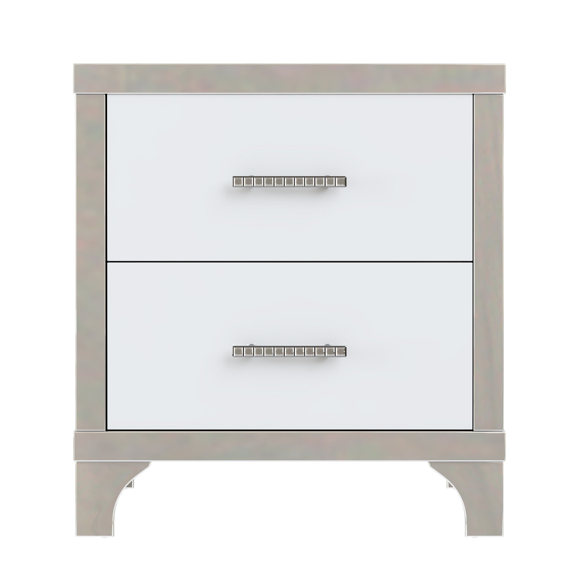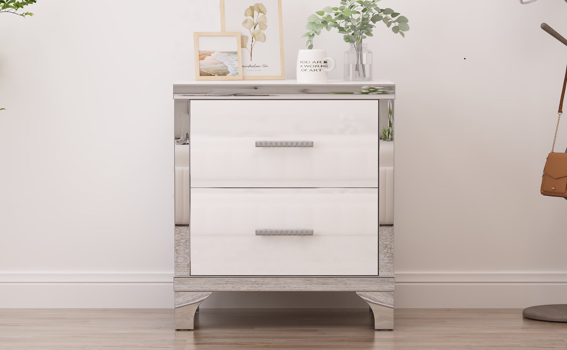 Elegant High Gloss Nightstand with Metal Handle,Mirrored Bedside Table with 2 Drawers for Bedroom,Living Room,White