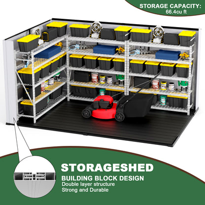 - Heavy-Duty Floor: Strong resin floor supports heavy tools and outdoor equipment with ease.