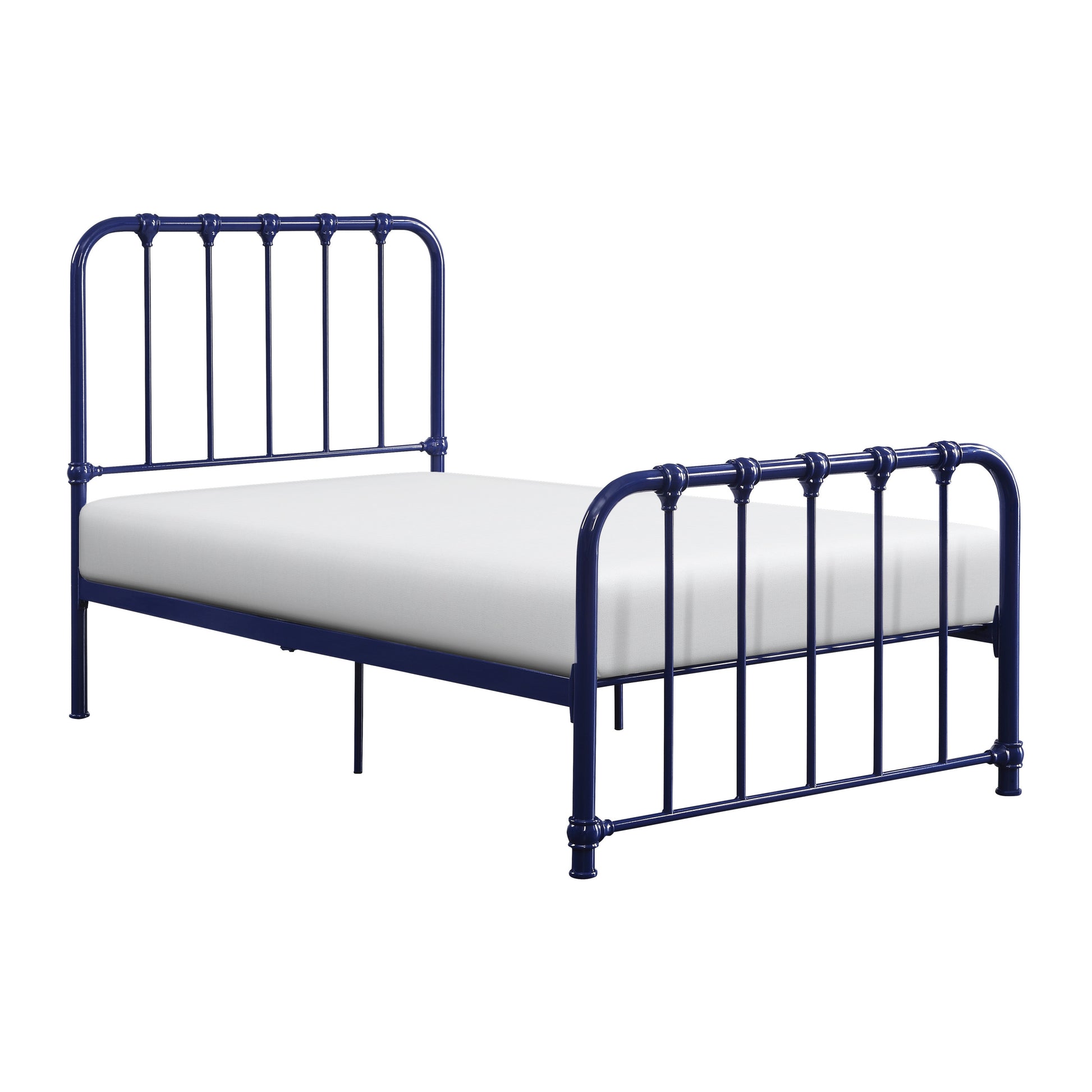 Metal Bed Blue Finish Twin Platform Bed 1pc, Bed in a Box Specifications