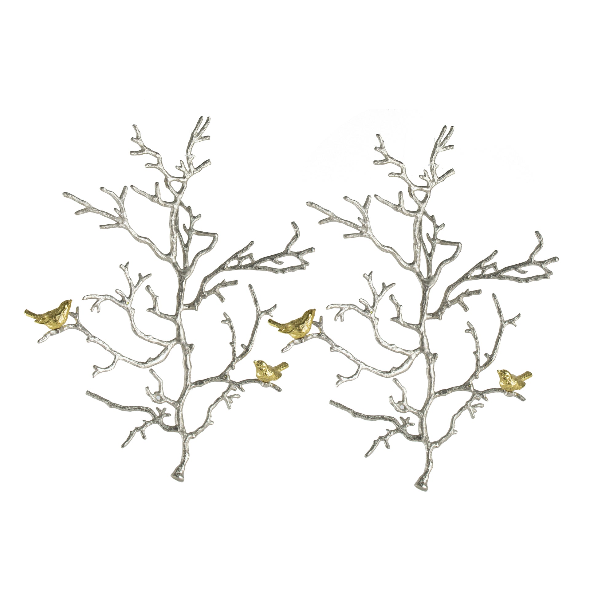 - Infusing the tranquil beauty of nature with a modern touch, the wandering silver branches of each sculpture are topped with two little golden birds.
