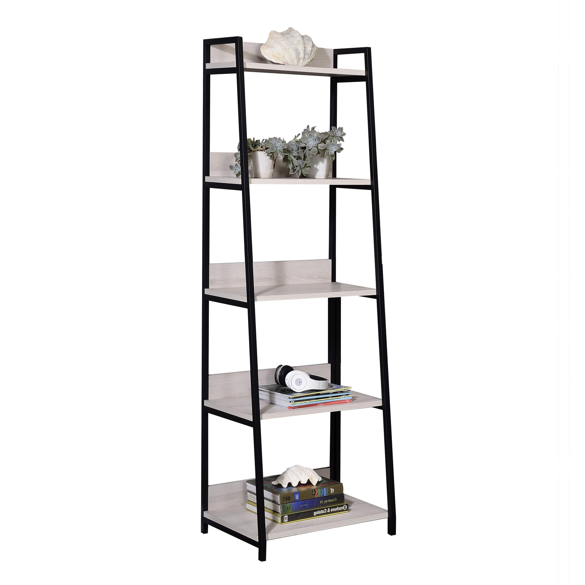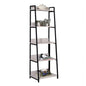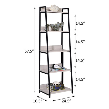 Elevate your decor with this stylish rectangular leaning-ladder bookshelf, offering open compartments and wooden shelves supported by a sleek metal open frame for a modern aesthetic. Perfect for displaying books, decor, and cherished items, this bookshelf adds functional elegance to any room in your home.