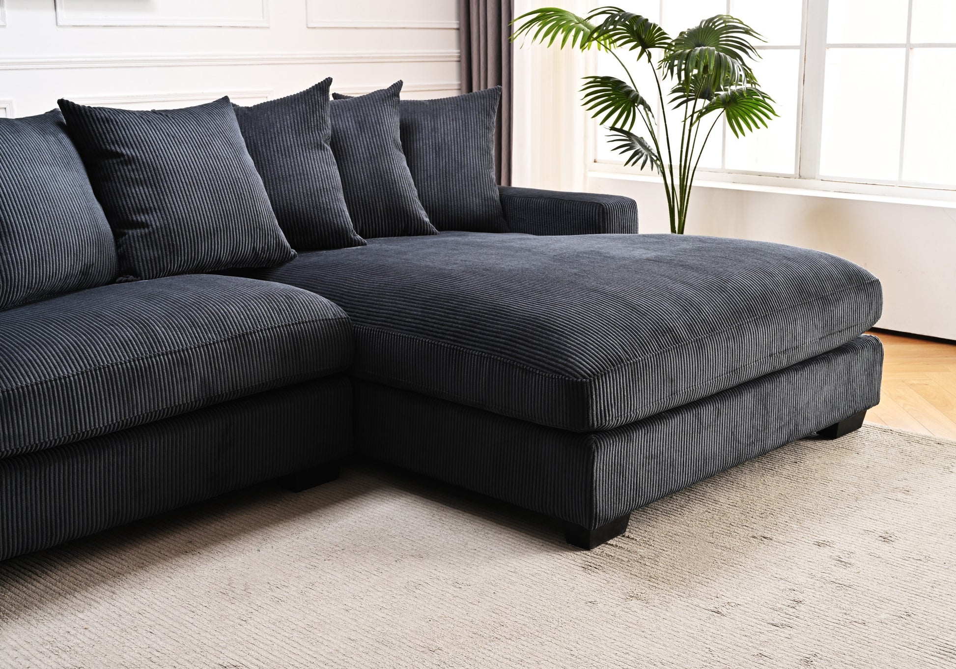 Container Furniture Direct Luxe Oversized Two-Piece Right Facing Sectional Couches for Living Room, 102.4-Inch L Shaped Sofa with Chaise, Upholstered with Corduroy Fabric, Black