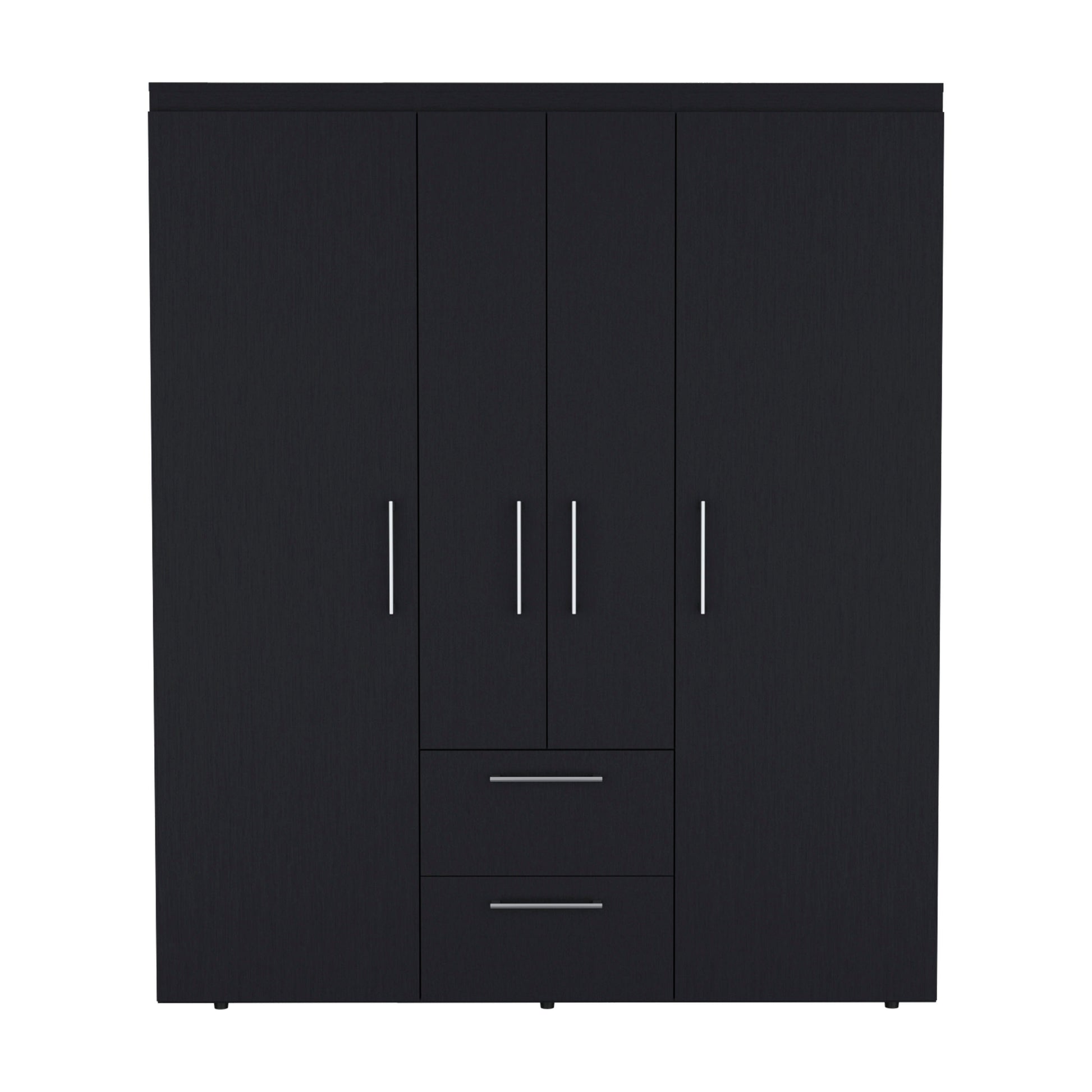 Bariloche Wardrobe, Multi-Section Storage with Hanging Rods, Shelves, and 2 Drawers