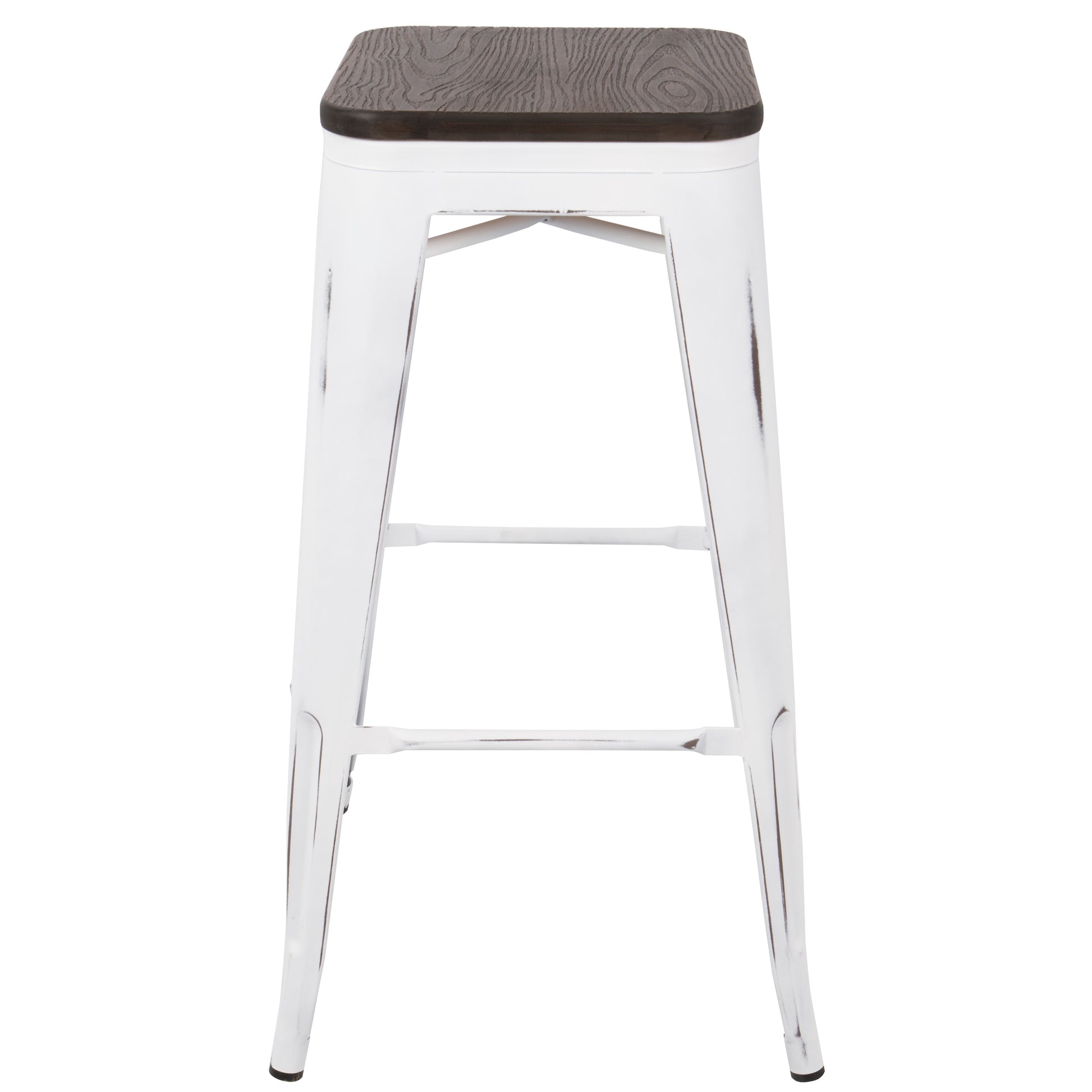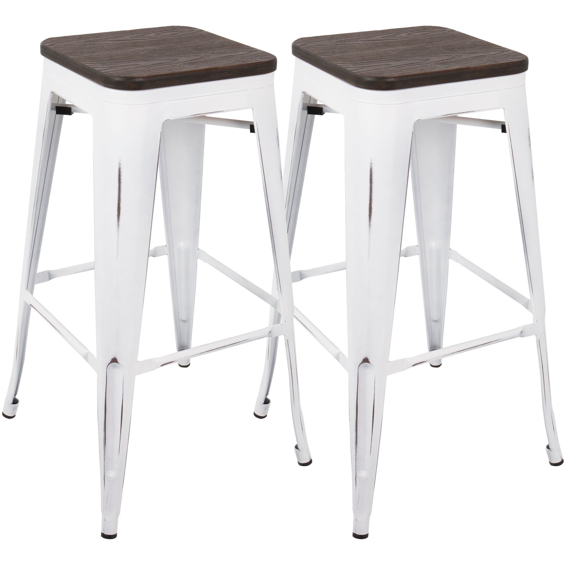 Oregon Industrial Stackable Barstool in Vintage White and Espresso by LumiSource - Set of 2