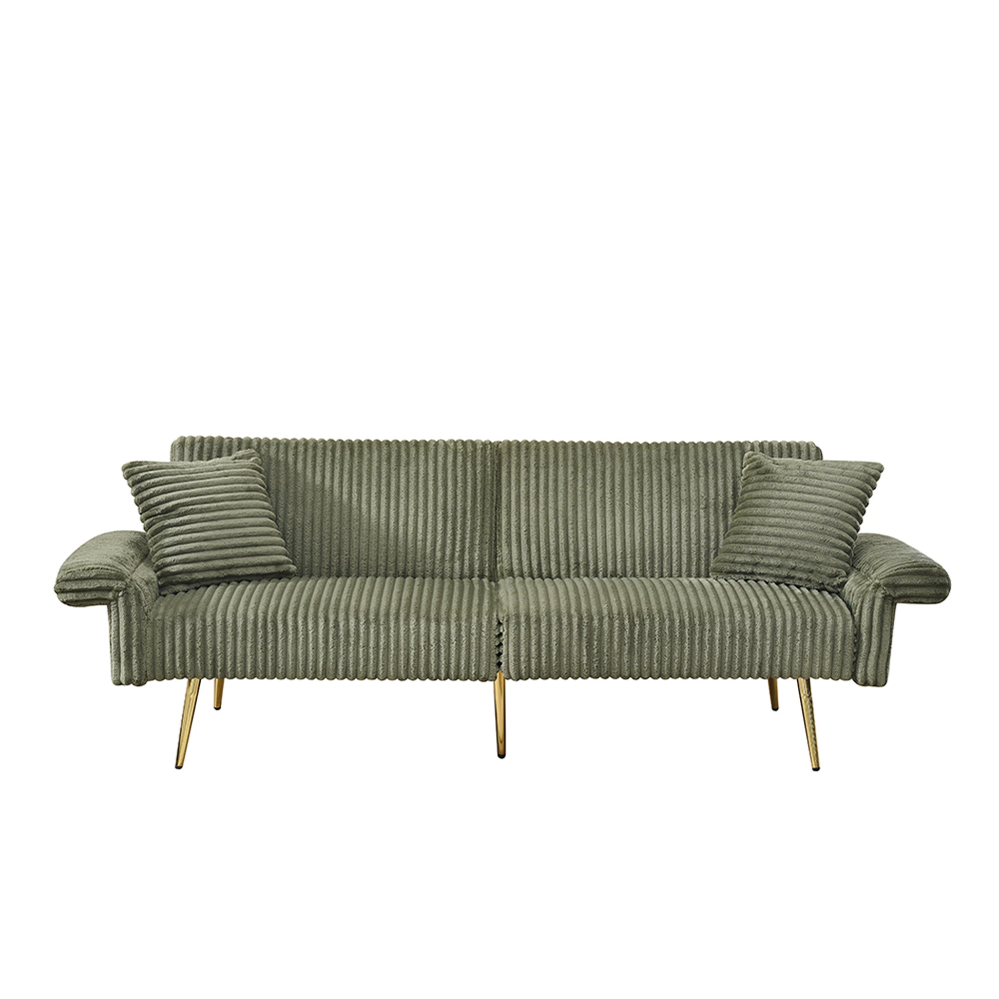 Modern Corduroy Sofa Bed, Foldable Double Sofa with Armrests, Green Velvet, 79 Inch