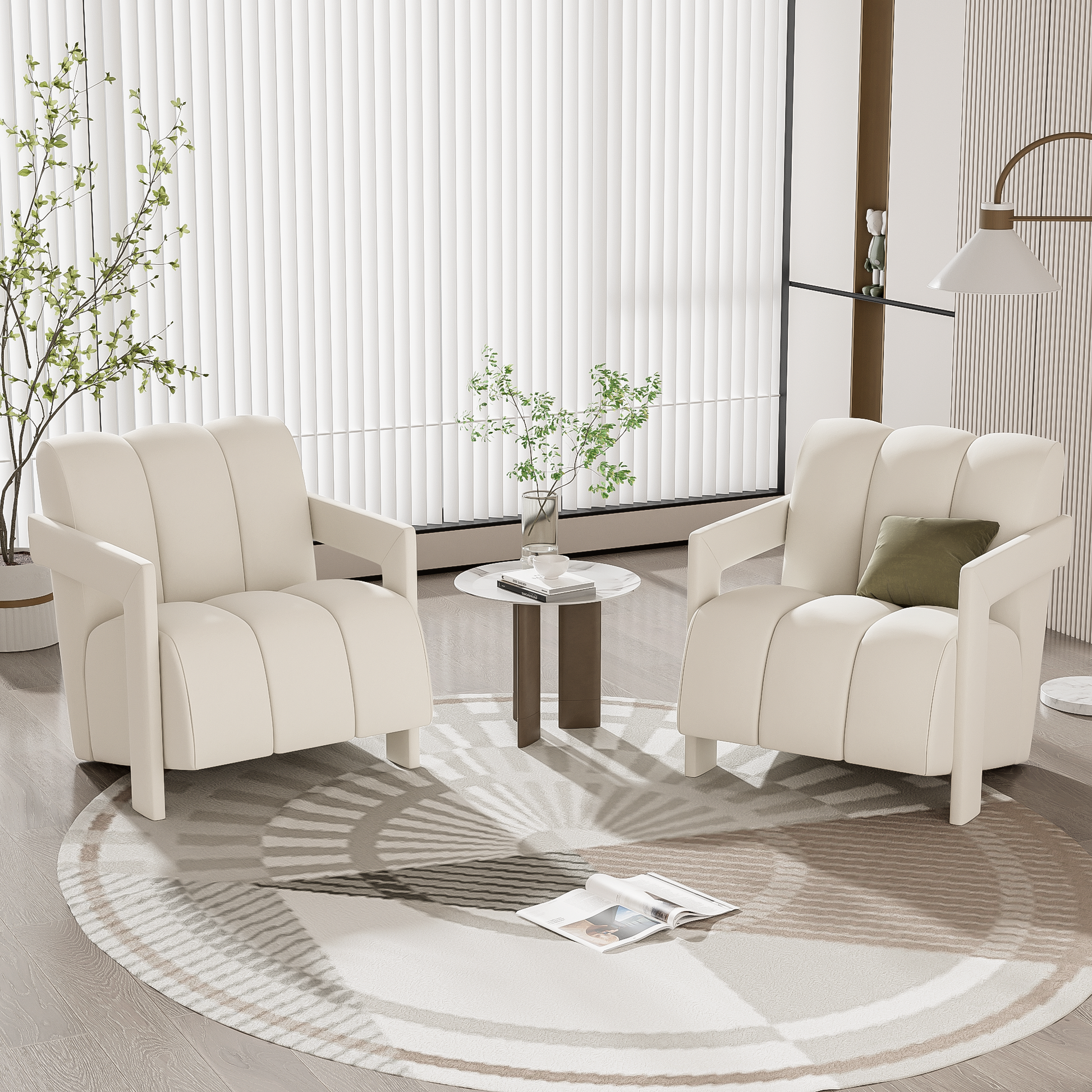 U-Can 26.3'' Modern Minimalist Leisure Armchair, Set of 2, Armchair with L-shaped Armrests and Polyester Fabric for Living Room
