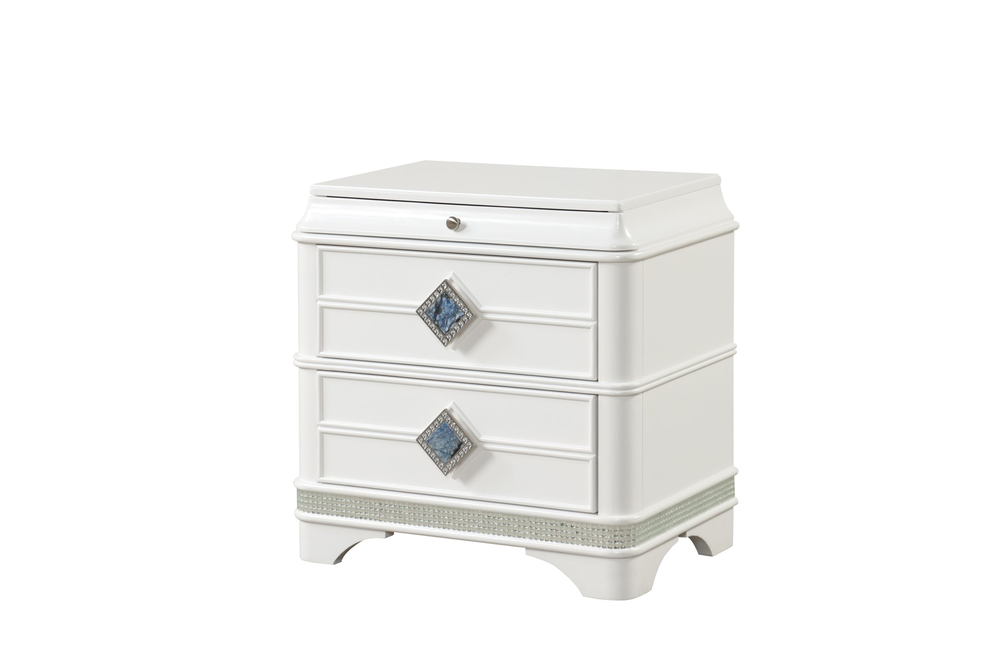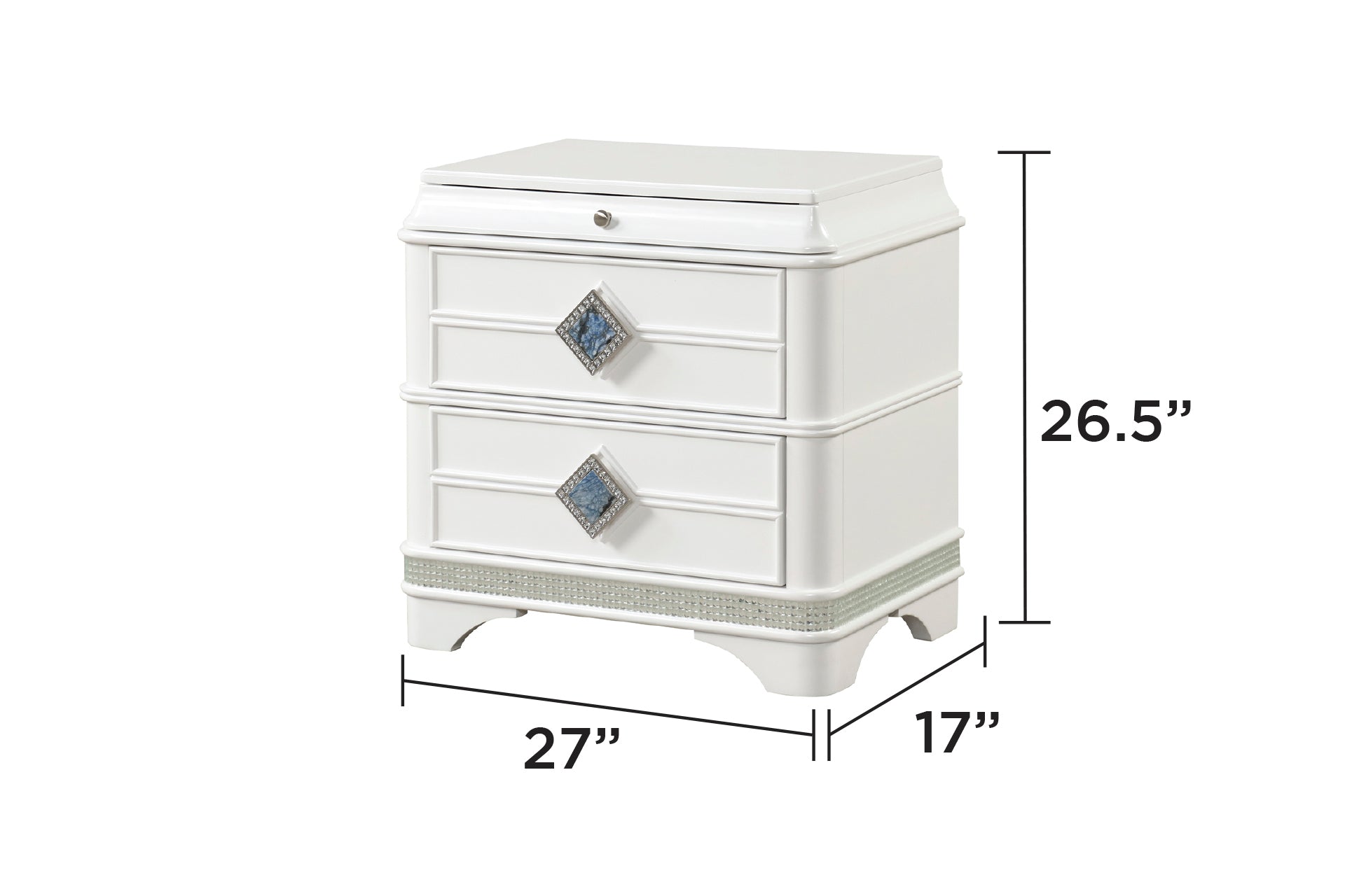Laguna Modern Style 2-Drawer Night stand Made with Wood, Hidden Jewlry Drawer and Crystal Accents in White