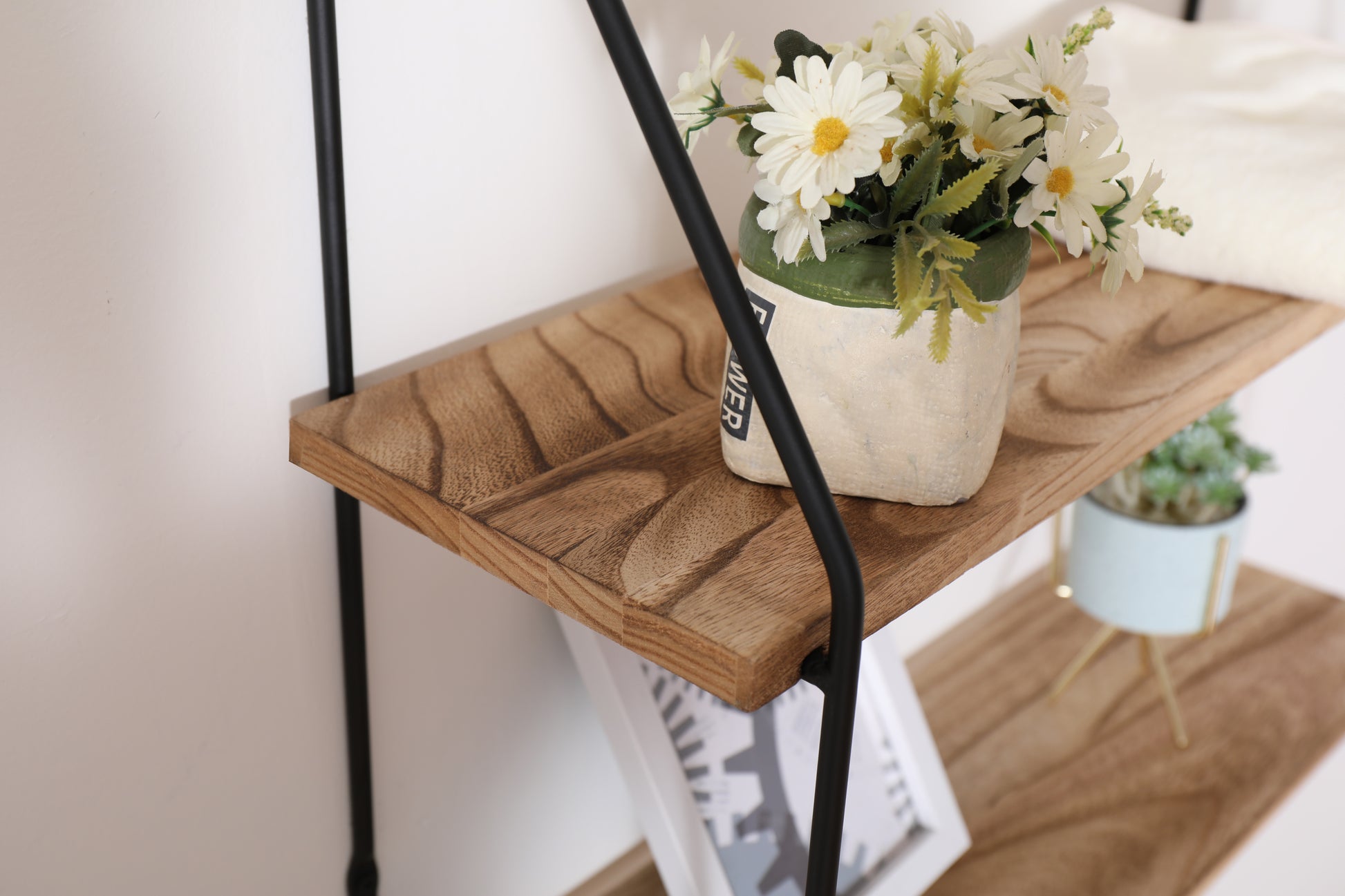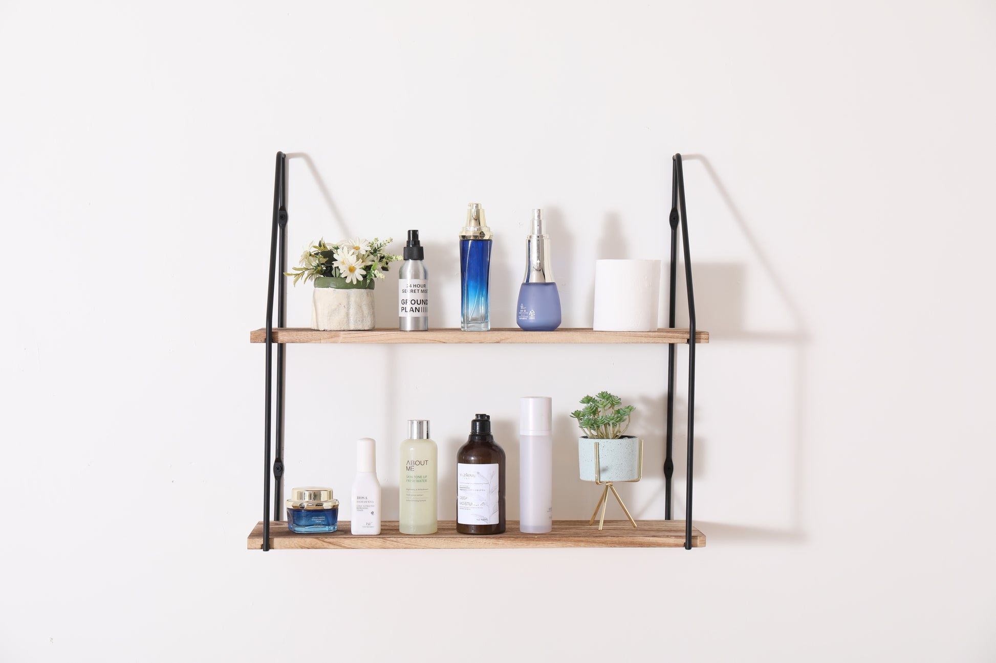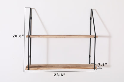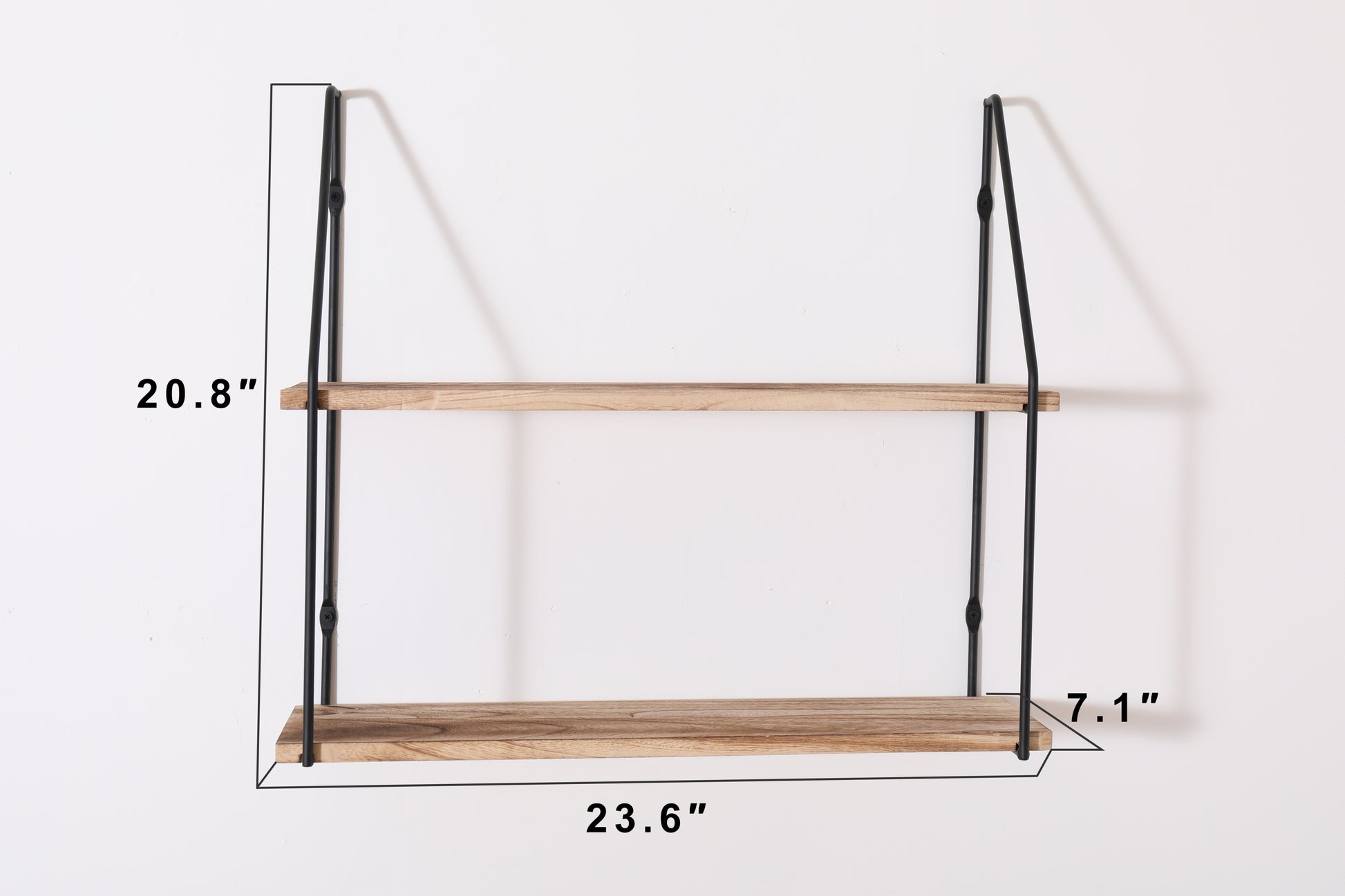 - 2-TIER FLOATING WALL SHELF (Natural Wood) — Display charming home decor and collectibles while offering practical storage .