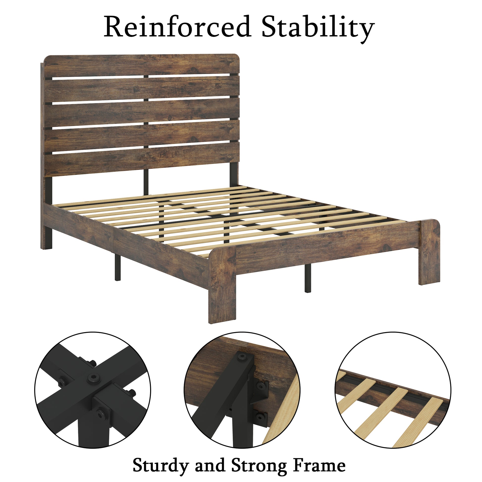 - [Sturdy and Only One Box] Constructed from high-quality metal frame and solid wood slats. Wood slats reinforce the sturdiness and durability of the platform queen bed structure. Bed in a box, don't have to worry or wait for the second box.