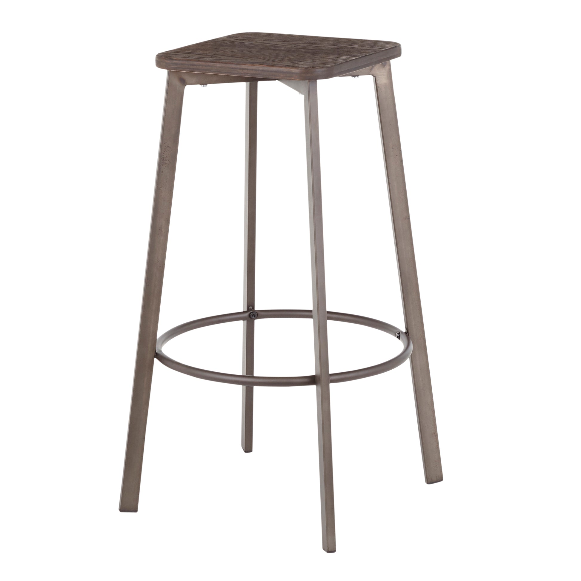 Clara Industrial Square Barstool in Antique Metal and Espresso Wood-Pressed Grain Bamboo by LumiSource - Set of 2