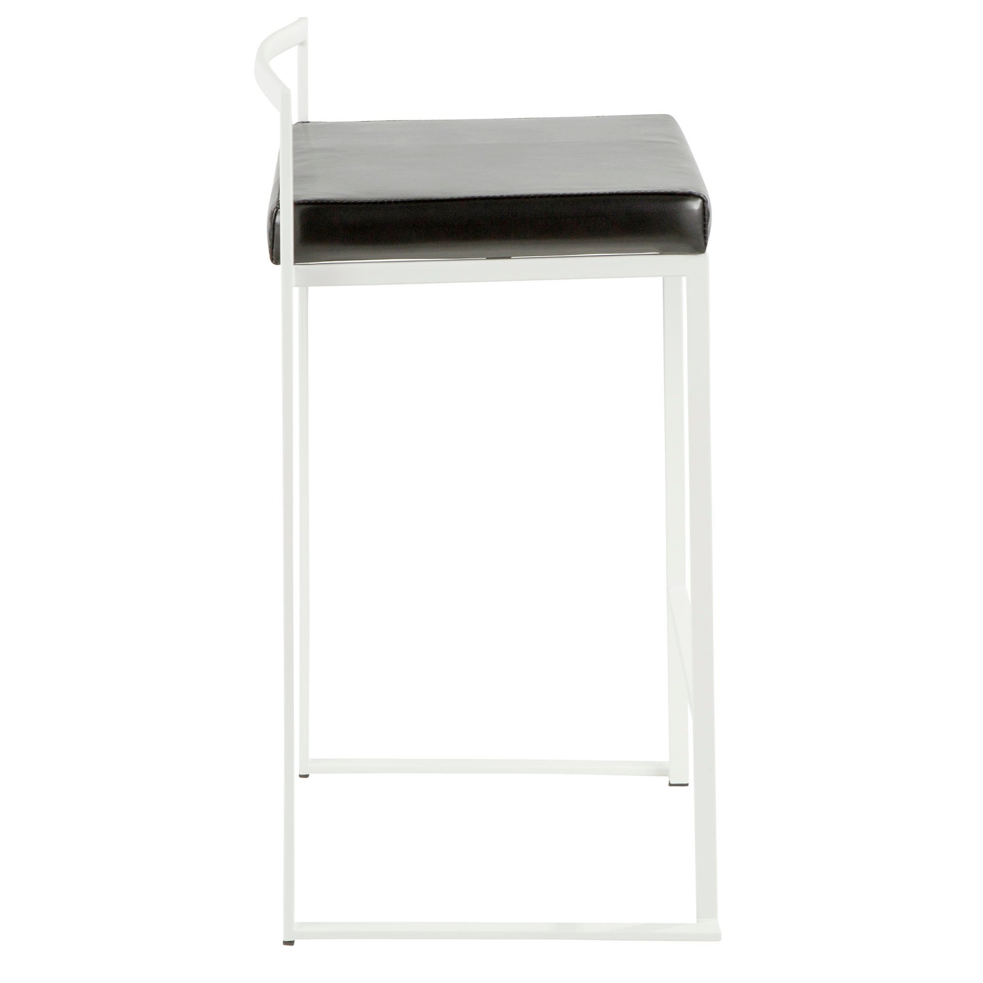 Fuji Contemporary Stackable Counter Stool in White with Black Faux Leather Cushion by LumiSource - Set of 2