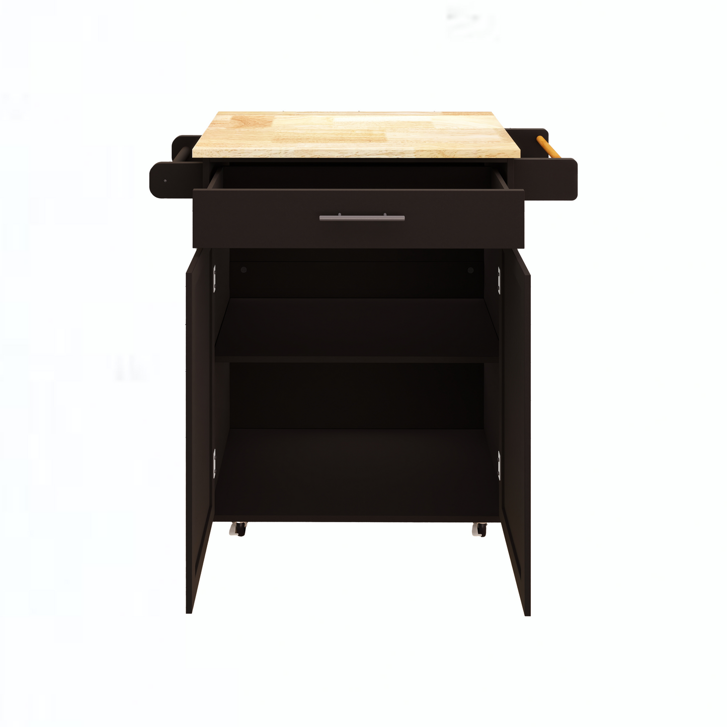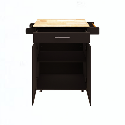 Kitchen island rolling trolley cart with 1 drawer & 2 doors with Adjustable Shelves & towel rack & seasoning rack rubber wood table top - Black