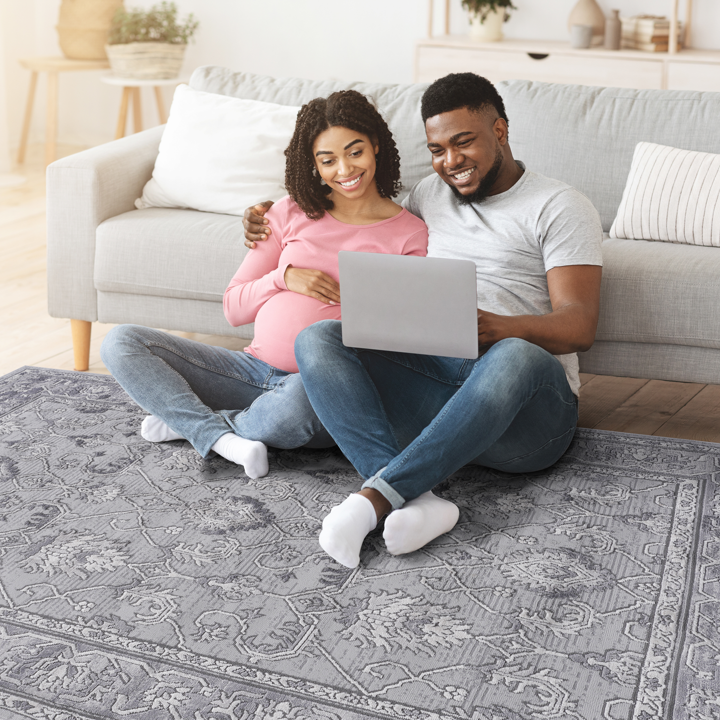 5X7 Grey/Oriental Non-Shedding Living Room Bedroom Dining Home Office Stylish and Stain Resistant Area Rug