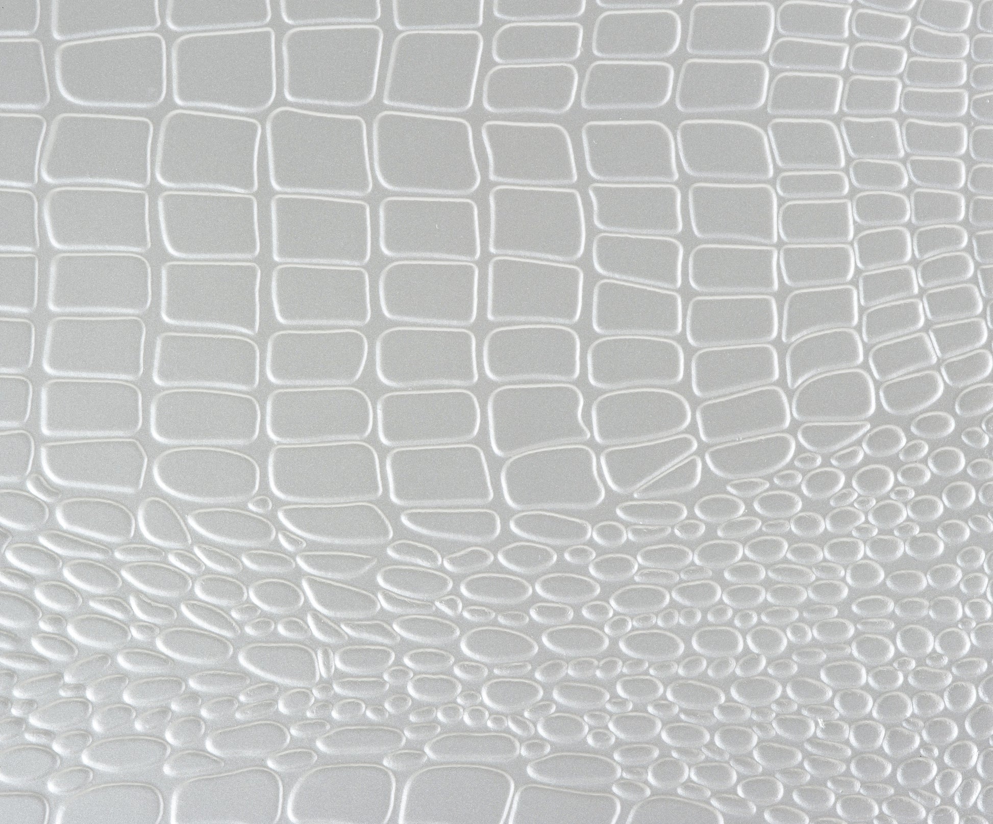 - Faux alligator embossed, textural drawer fronts with beveled mirror trim