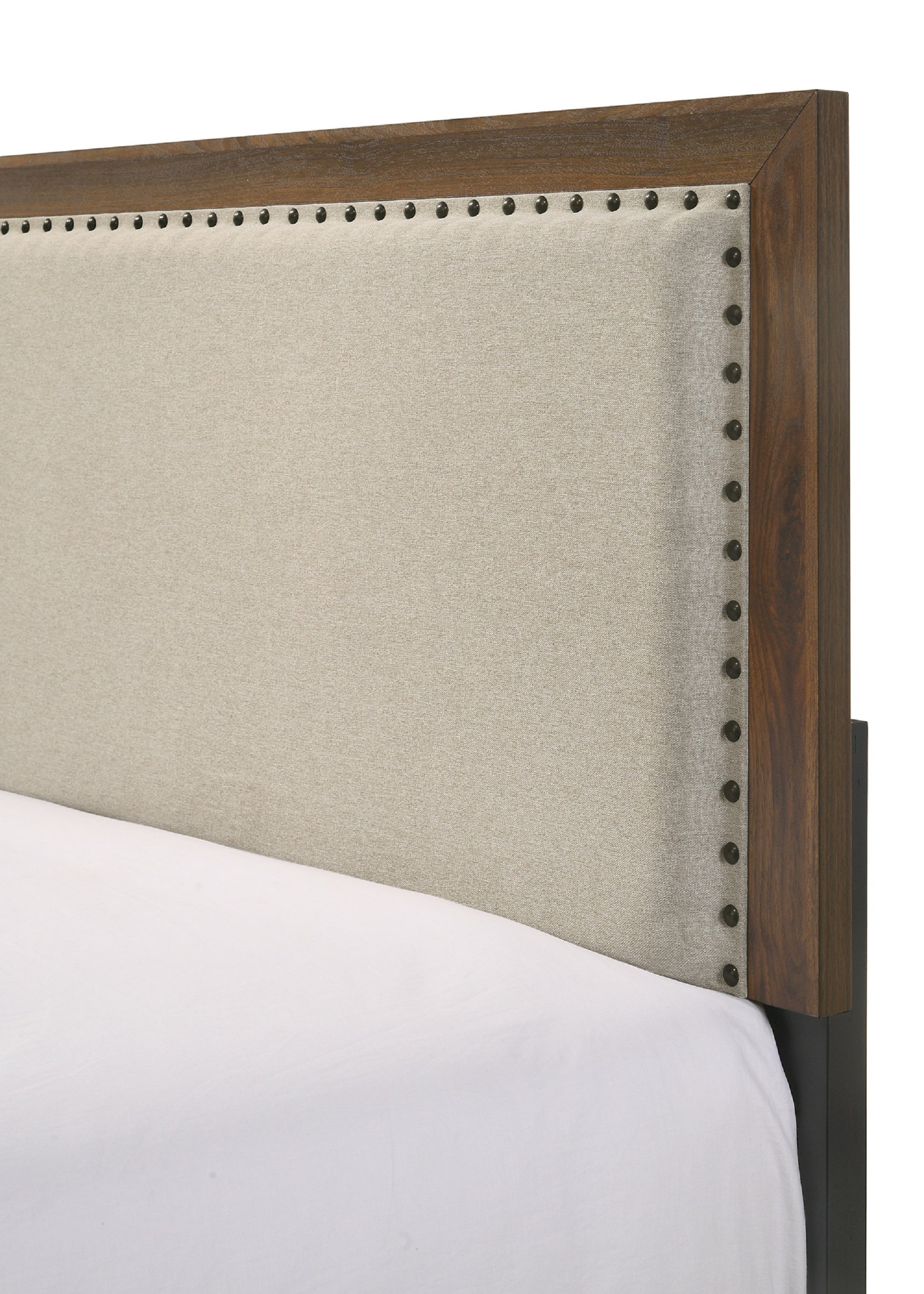 Brown Cherry Finish Fabric Upholstered Headboard Tufted Nailhead Trim 1pc Twin Size Youth Kids Panel Bed Beautiful Wooden Bedroom Furniture