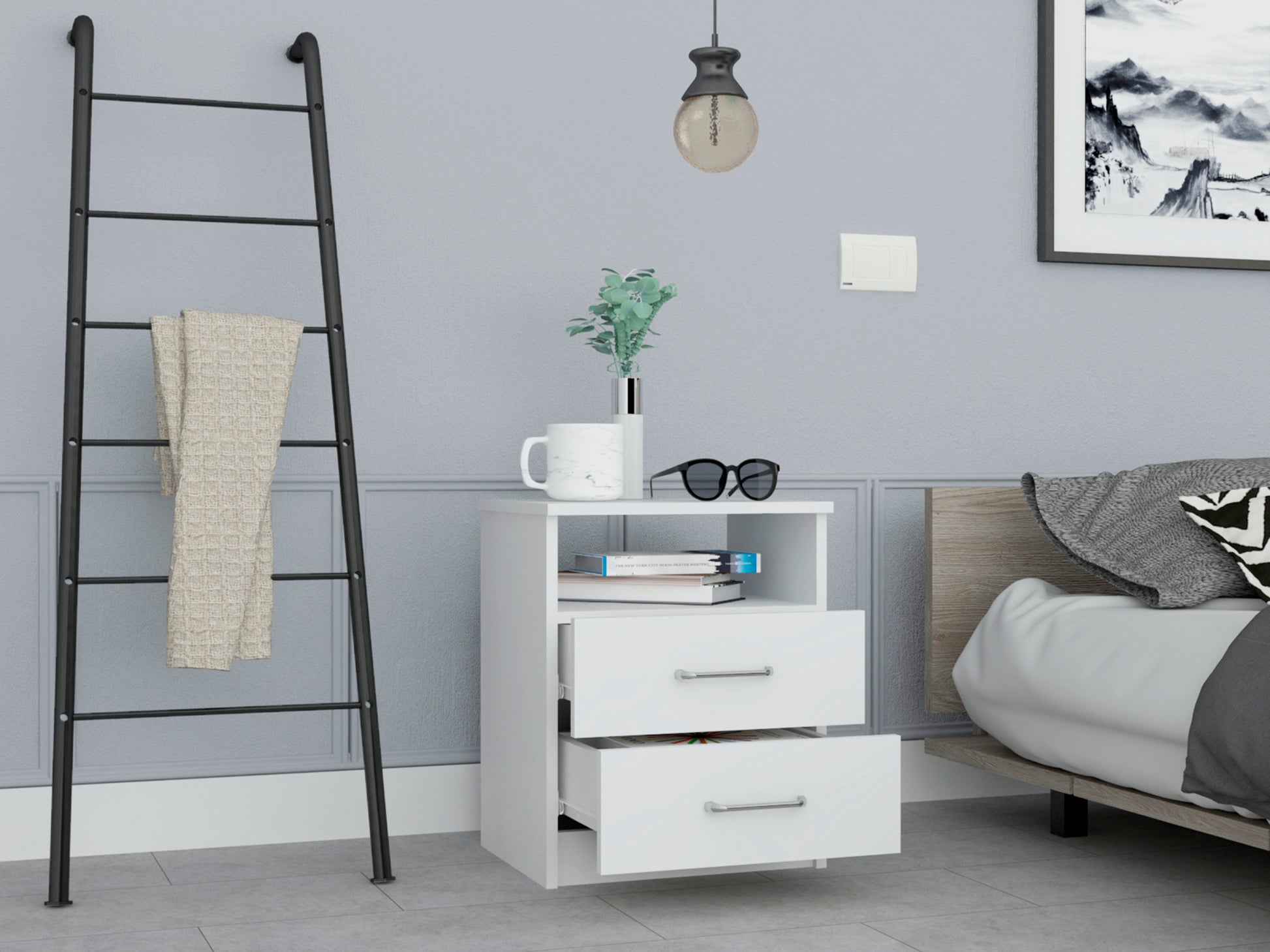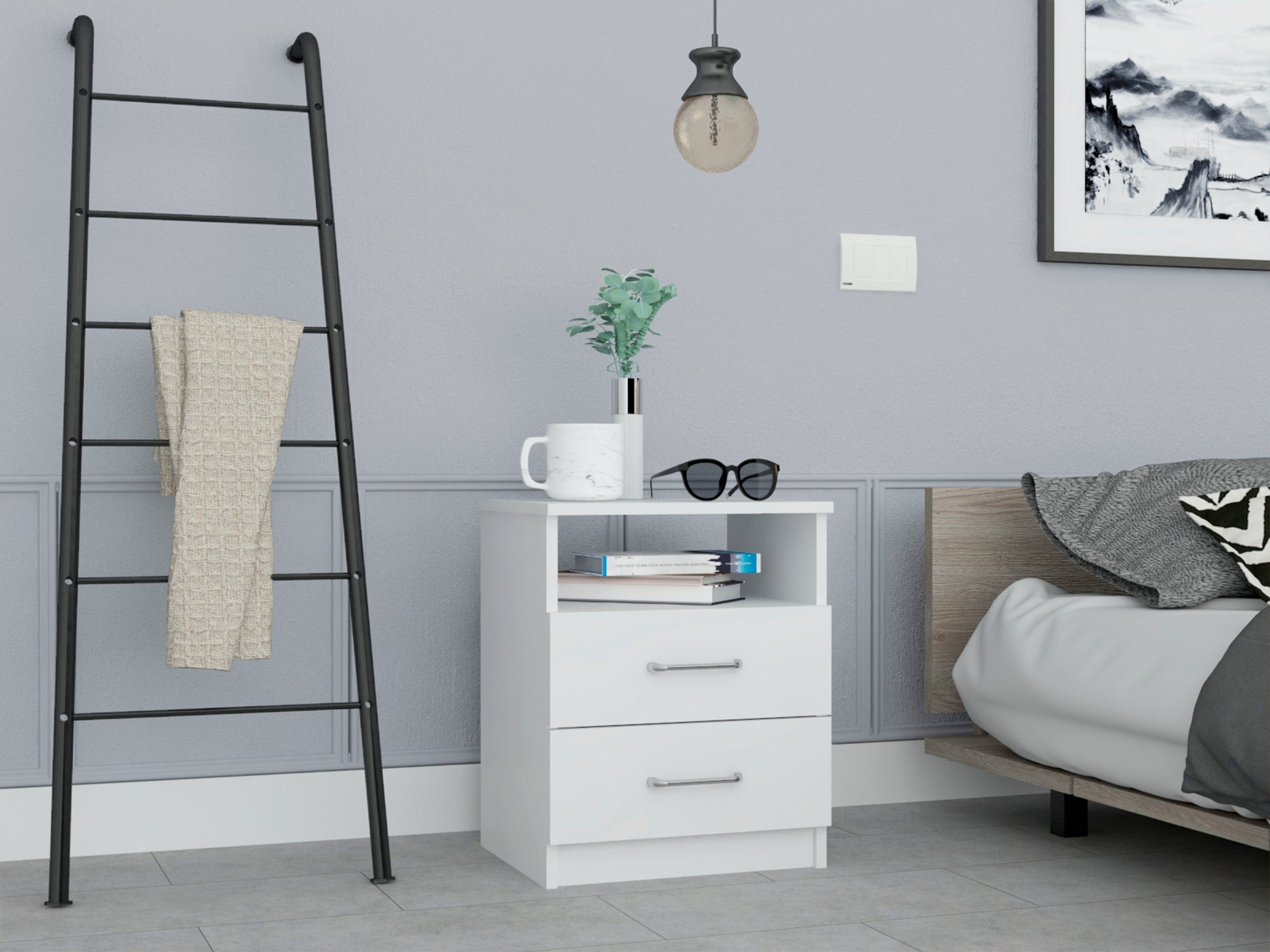 Napoles Nightstand , End Table, Side Table Superior Top, Two Drawers, One Shelf -White