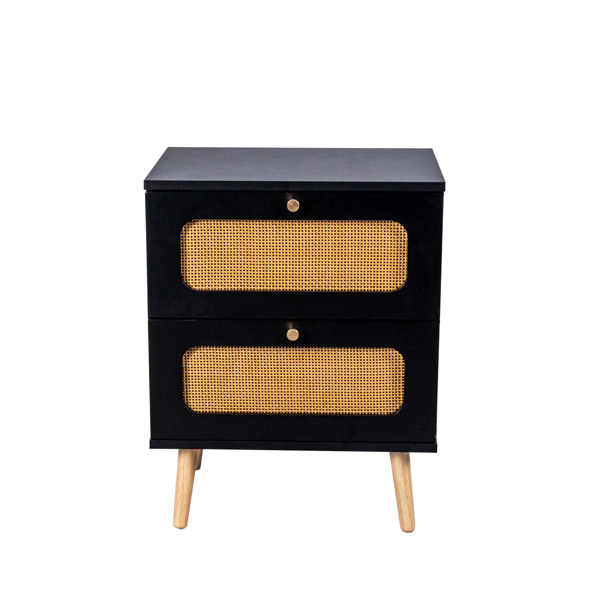 The nightstand's drawer door surface is handcrafted from natural rattan,Not just a nightstand but a side table,The rattan decorated drawer is beautiful and practical and the rattan mesh design keeps the air flowing in addition to the storage. a two-tone blend of midcentury modern and boho that adds a cozy yet stylish touch to your space,It can be perfectly matched with our existing furniture. Rattan woven panel will bring a trace of elegance to the home. This 2-drawer nightstand fuses modern lines with coastal design elements – and we love the result. Taking cues from mid-century modern designs, this clean-lined nightstand is a stylish sidekick for your bed or sofa. Two spacious drawers give you plenty of storage space for bedroom essentials like remotes, spare sheets, or books, while the smooth tabletop provides more than enough room for framed family photos, potted succulents, or your favorite antique lamp.
