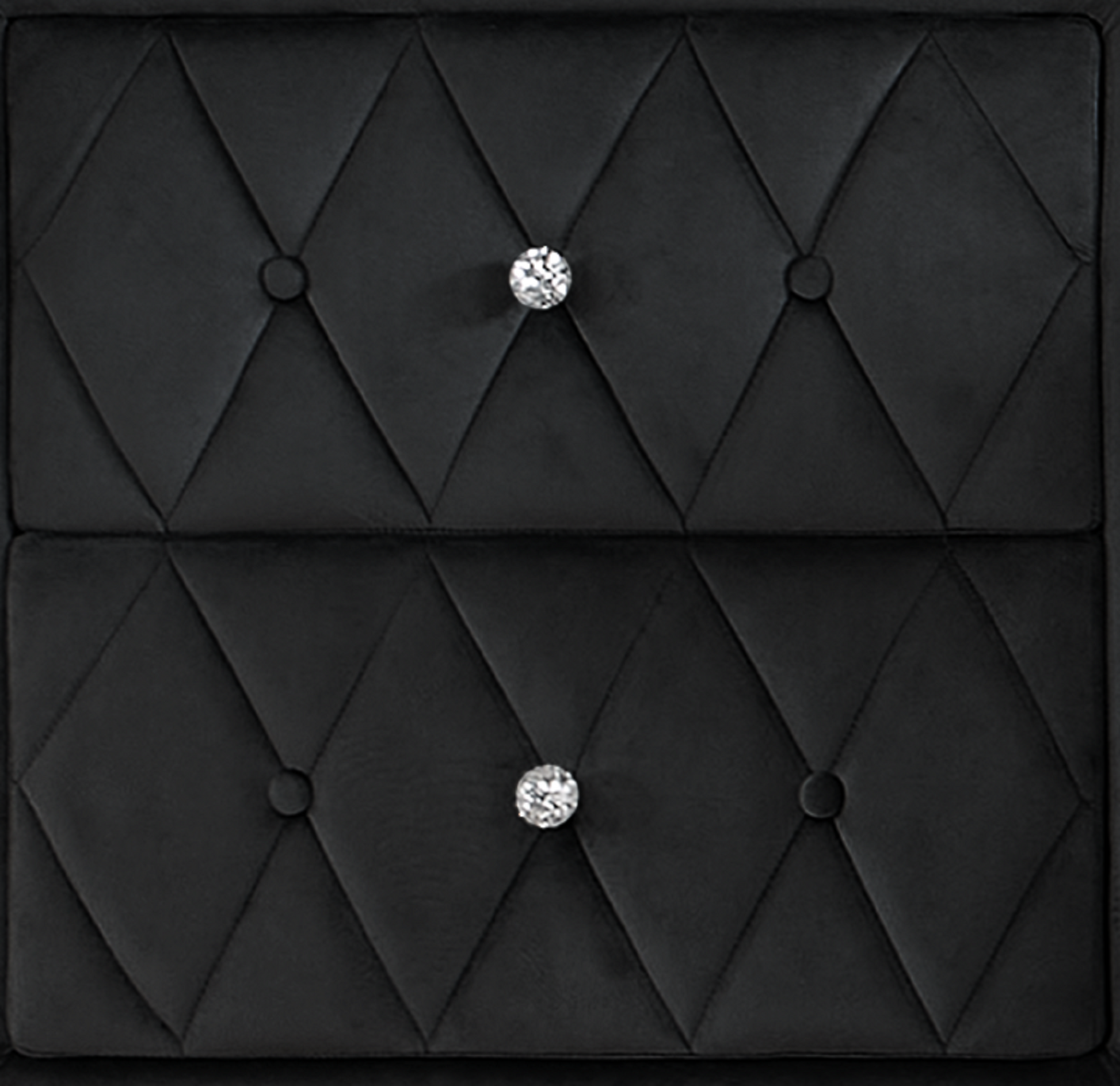 Description:-This Nightstand is a sleek and modern piece, featuring a black finish that adds elegance to any bedroom. It offers two spacious drawers for storage, decorative metal knobs, and a sturdy build for lasting durability.