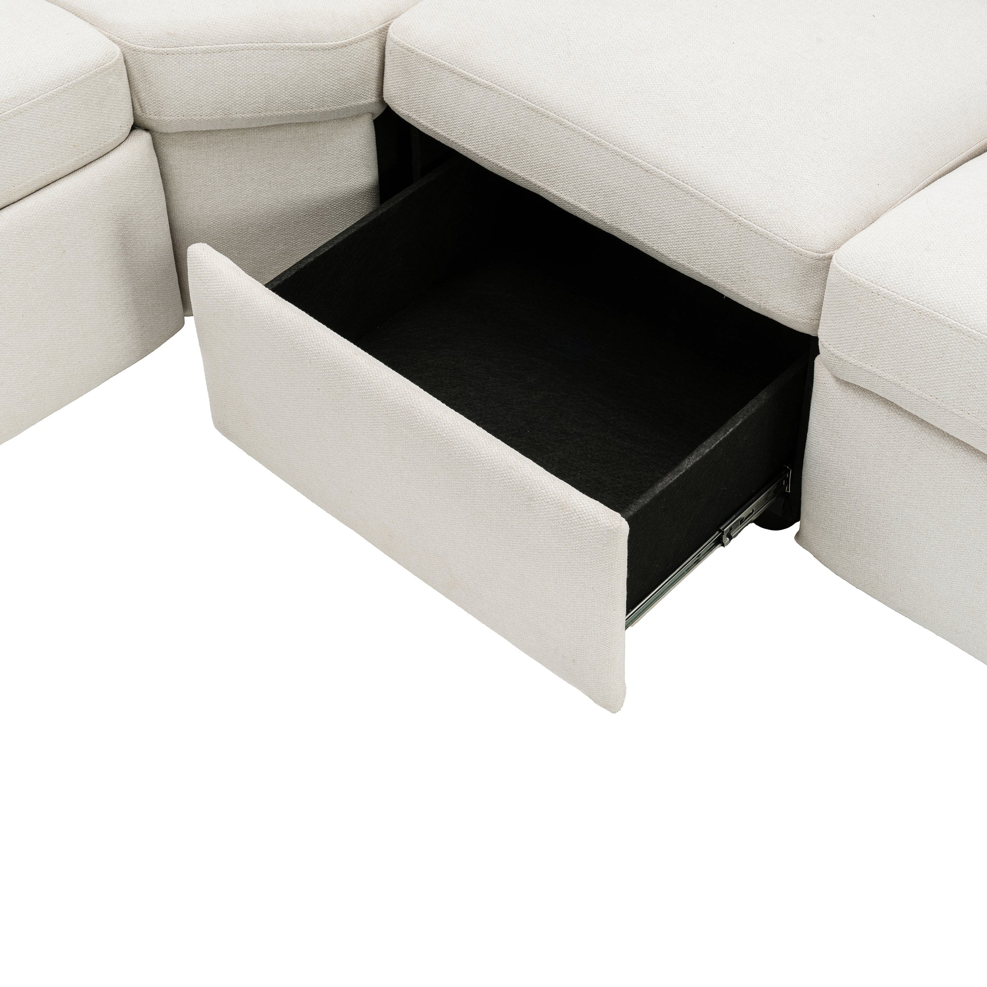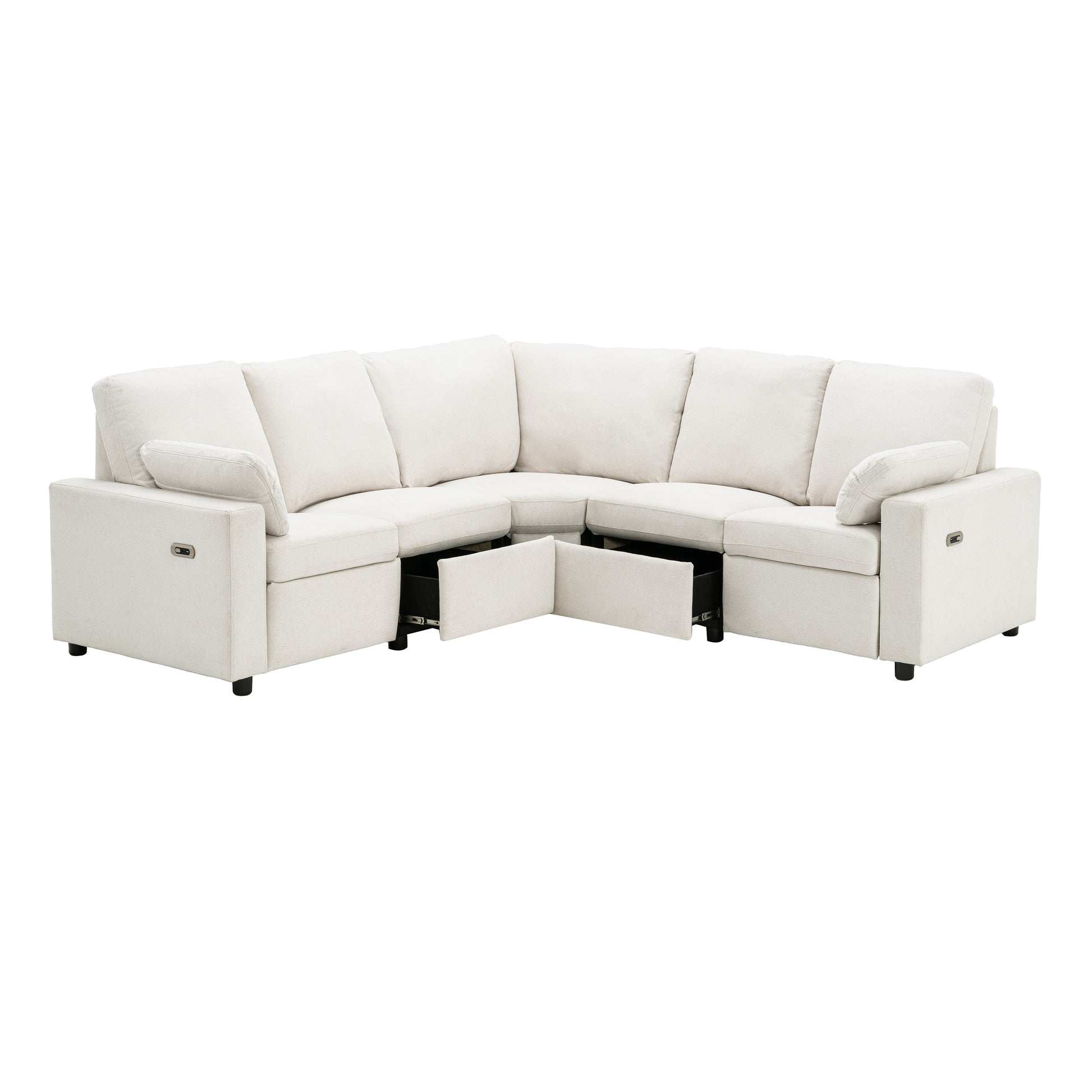 89" Power Recliner Sectional Sofa Home Theater Reclining Sofa with Two USB Ports, Two Storage Drawers for Living Room, Beige