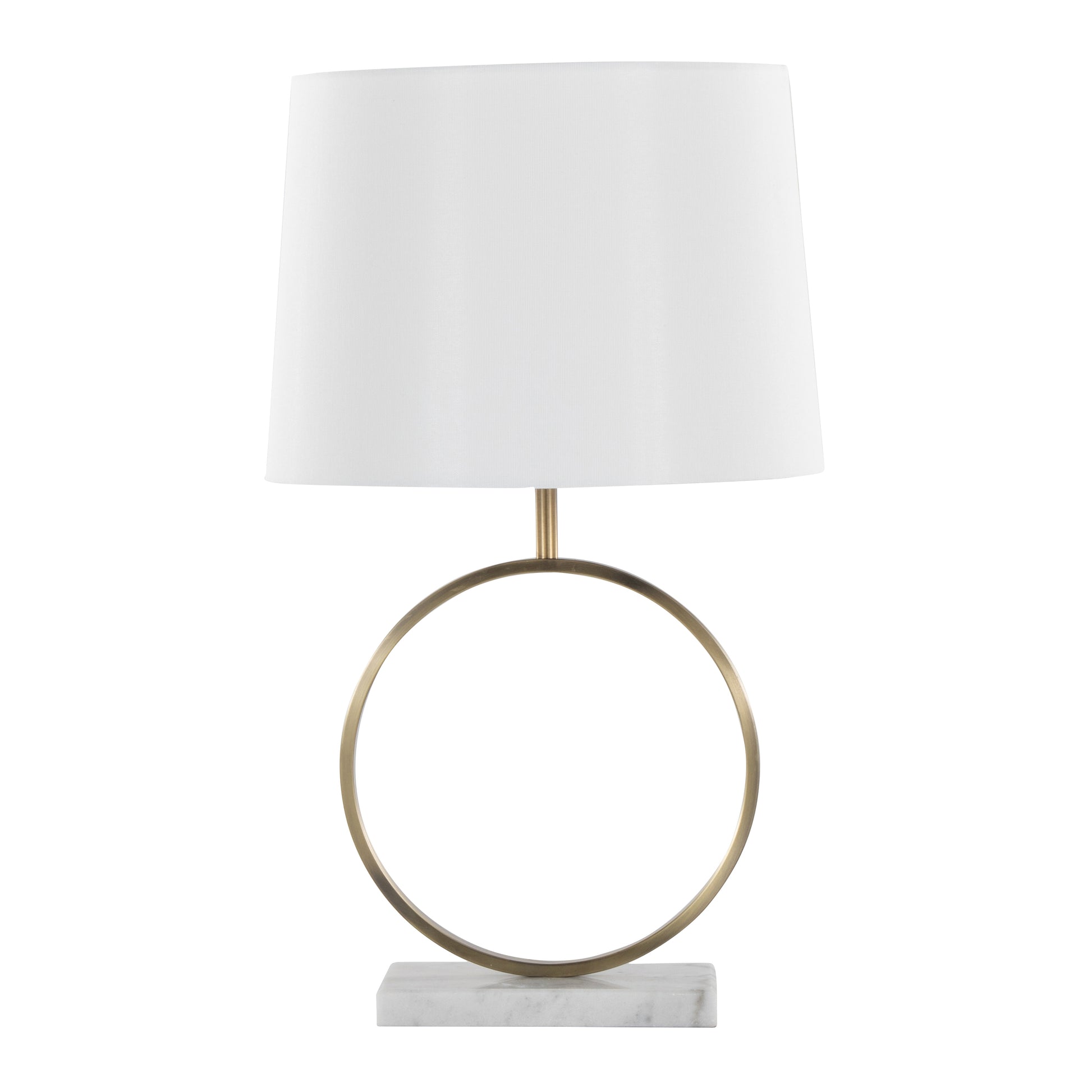- The Moon Table Lamp by LumiSource is sure to bring a touch of sophisticated style to any desk or office area. With its white marble base, circular gold metal frame, and linen empire shade, it's a functional and dazzling accent piece reminiscent of the moon. Light up your room with this modern piece, sure to impress!