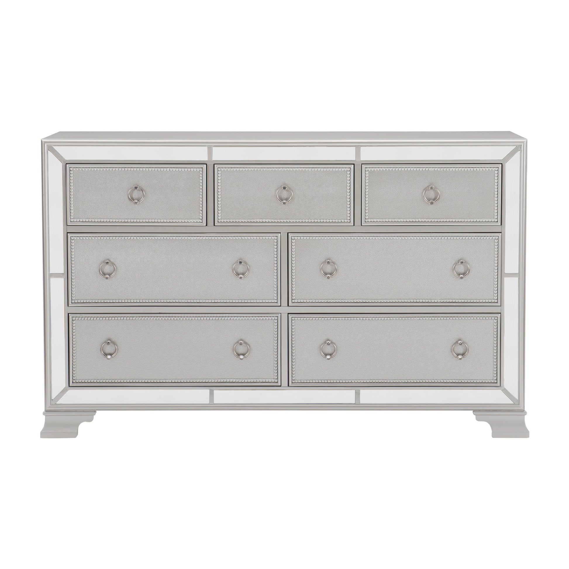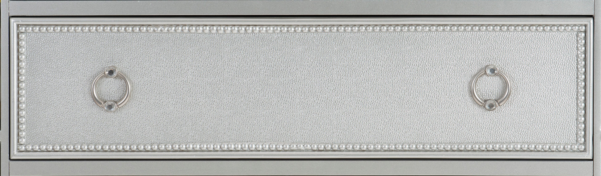The reflection of your glamorous image is one of striking style and classic sophistication, all illuminated by the boldly designed Avondale Collection. Mirrored framing immediately draws your eye to the modern-traditional profile. Silver finished drop pull hardware centers each bead-molding adorned drawer front.