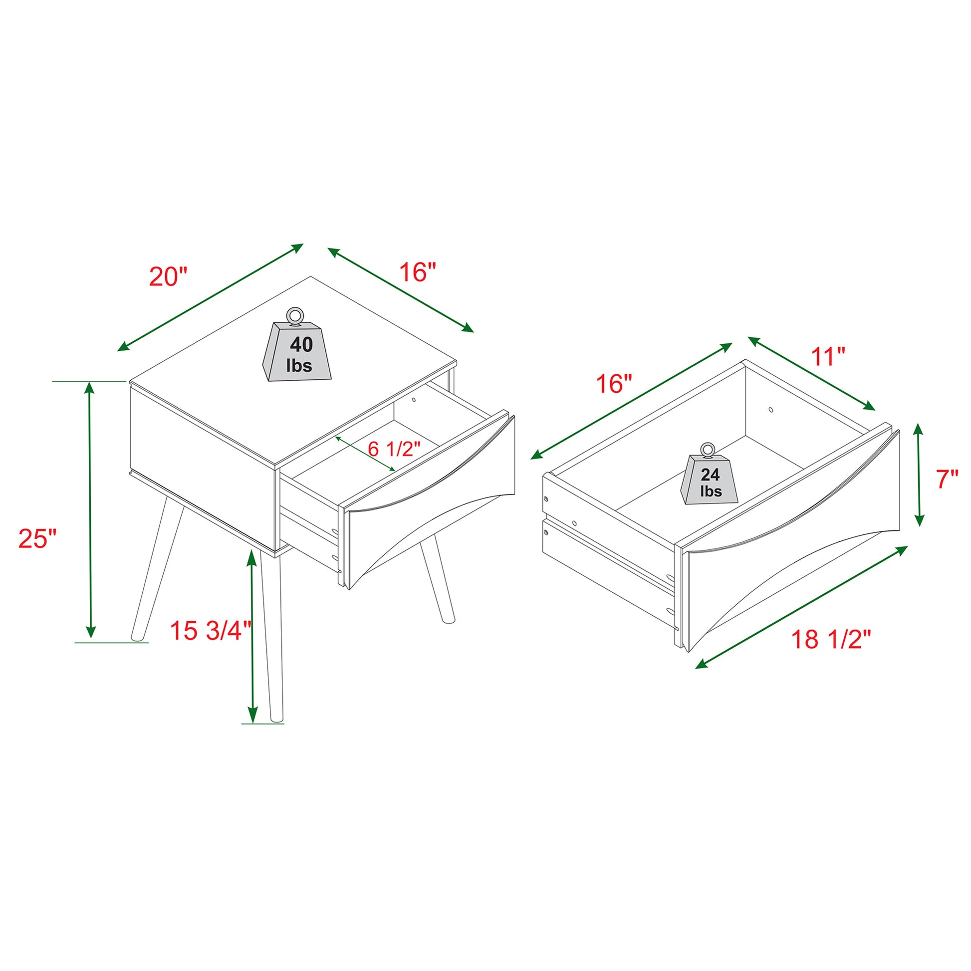Mid-Century Modern 1-Drawer Solid Wood Nightstand – Walnut