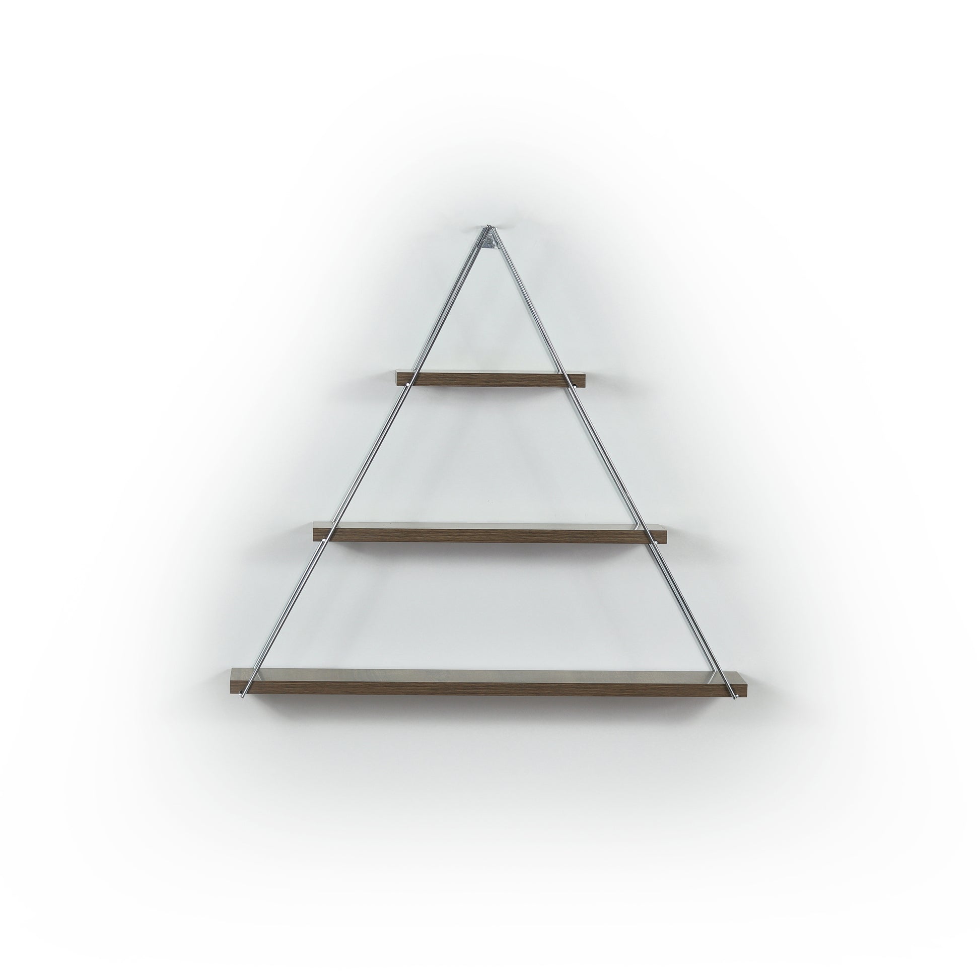 Moset Floating Wall Decor Wall Mounted Rustic Decorative Hanging Metal Bracket Triangle Shelf for Books, Walnut/Chrome