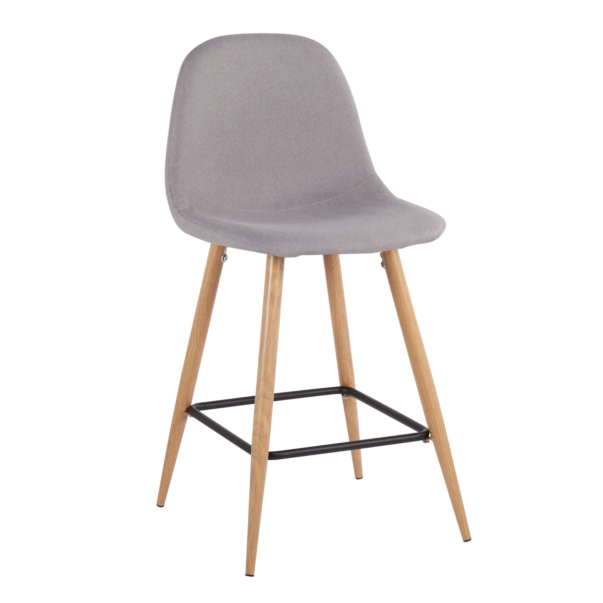 Pebble Mid-Century Modern Counter Stool in Natural Metal and Light Grey Fabric by LumiSource - Set of 2