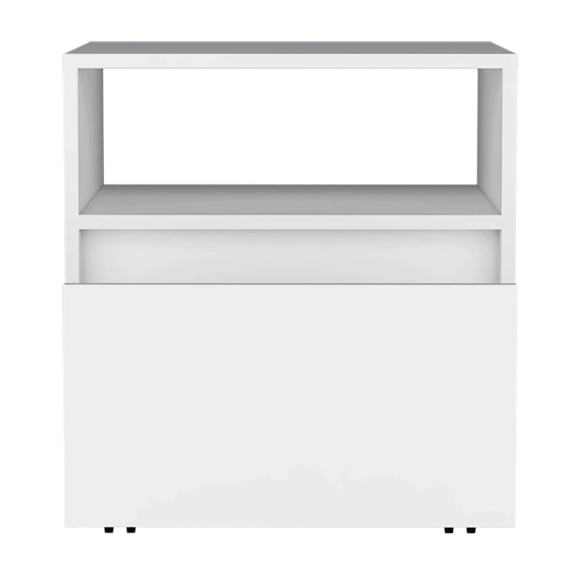 Nightstand 20"H, with One Open Shelf, 1 Drawer and Casters, White