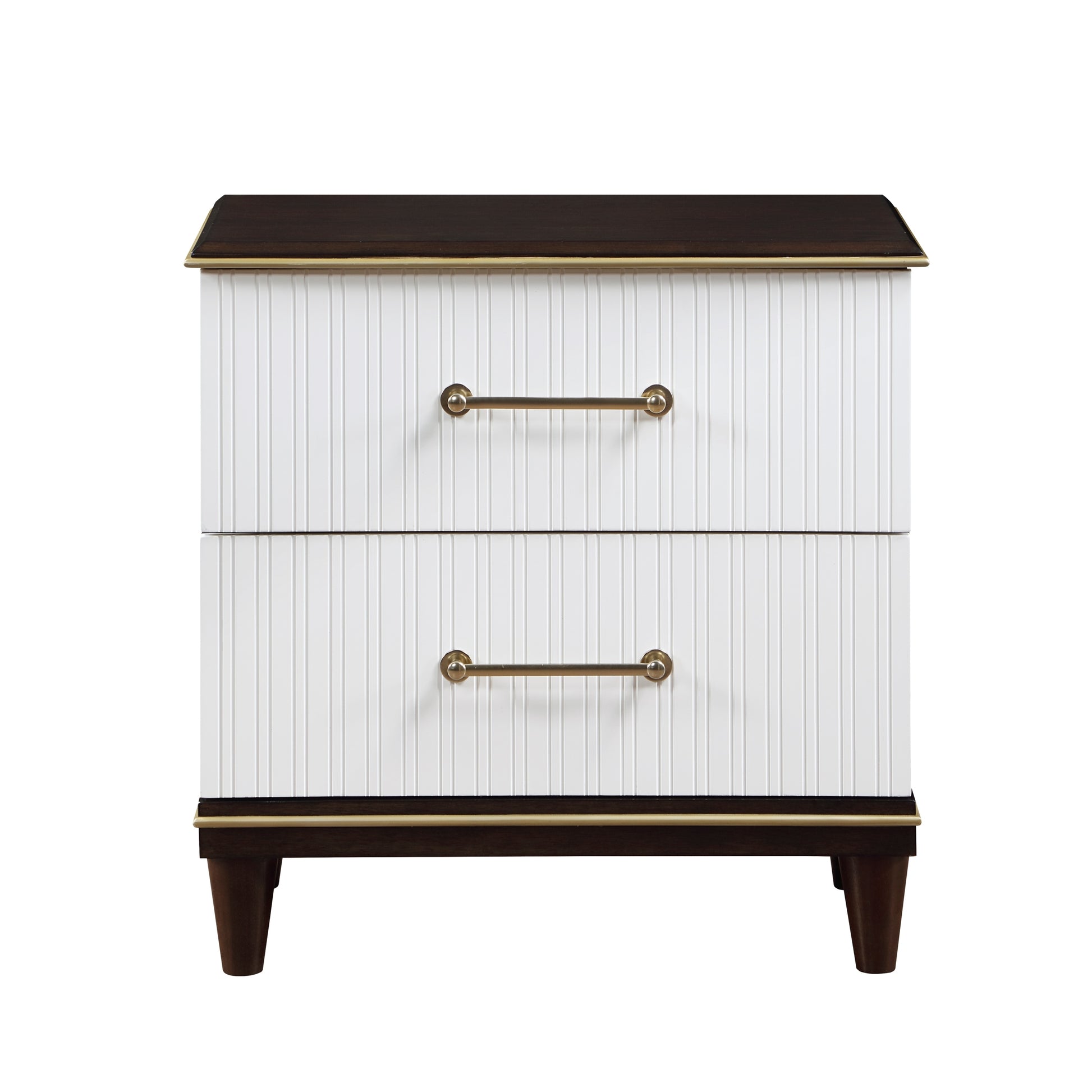 Contemporary White and Cherry Finish 1pc Two Drawers Nightstand 2-Tone Finish with Gold Trim Modern Bedroom Furniture