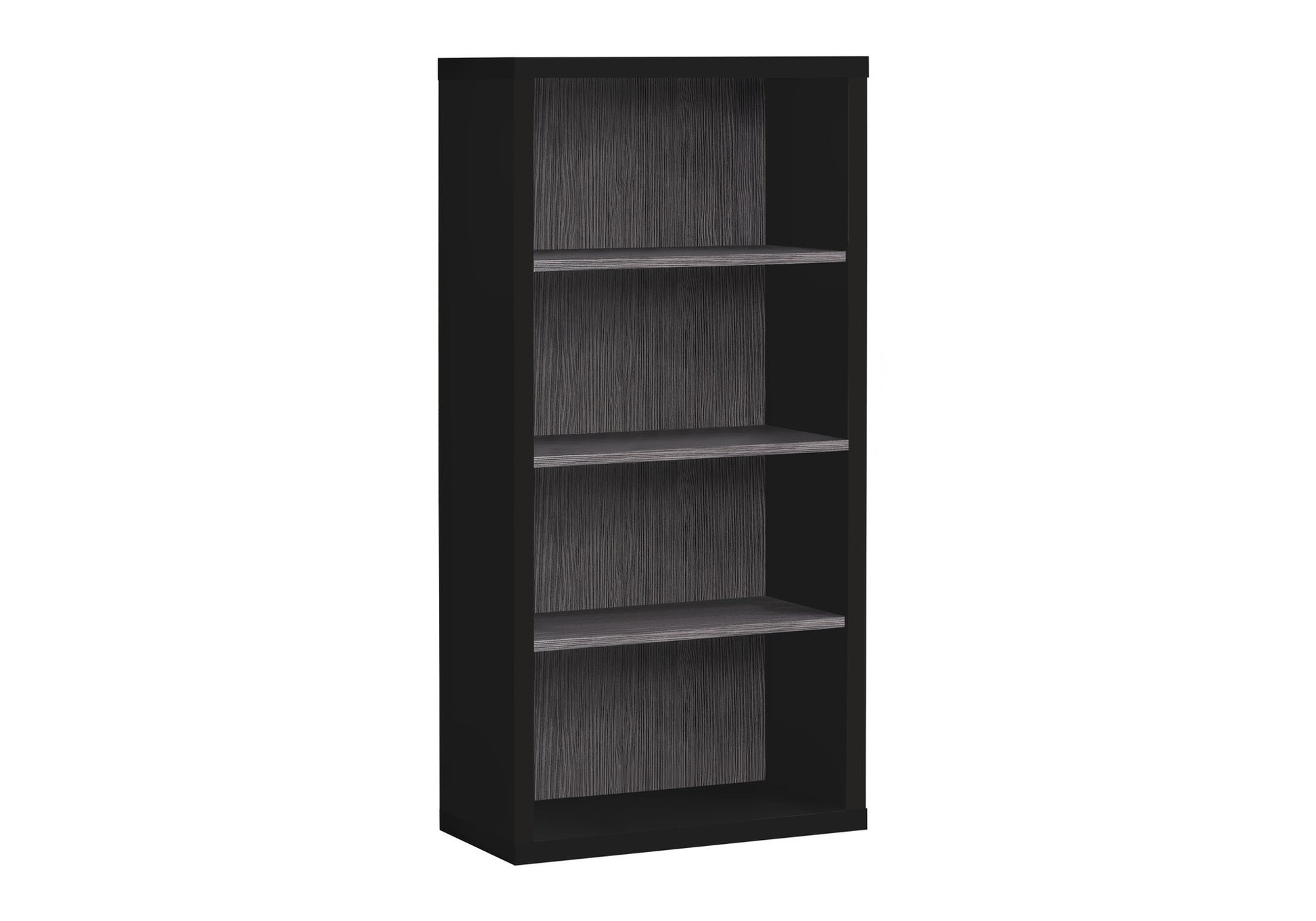 - 4-shelf bookcase in an elegant black and and grey wood-look finish on all sides to make a real statement in your living space