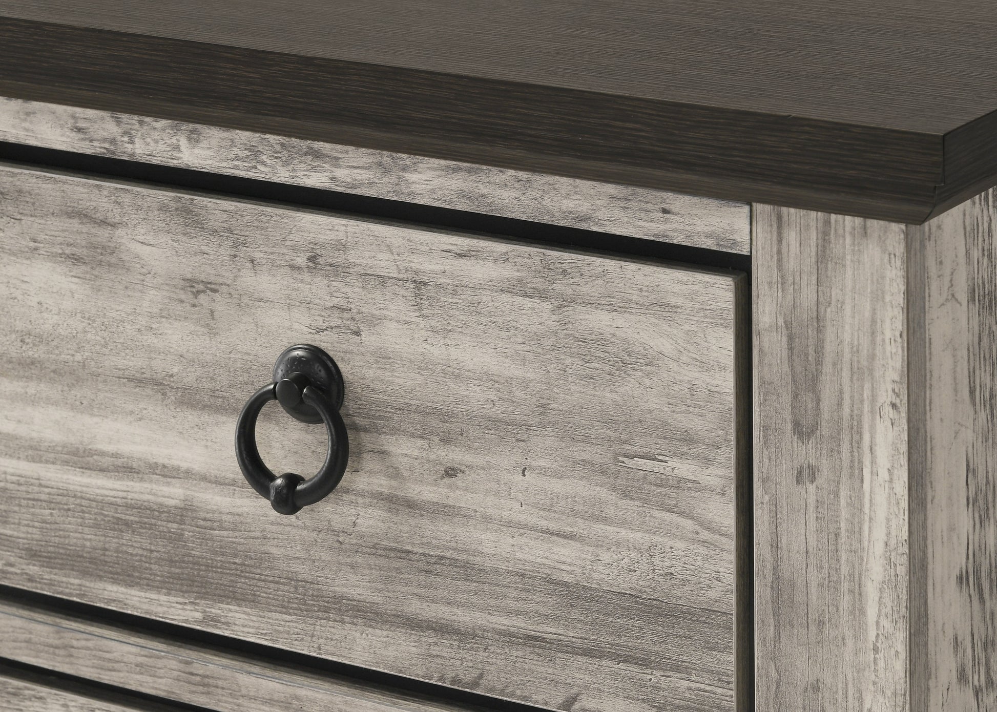 1pc Contemporary Rustic Gray Two-Tone Finish Two Drawers Nightstand Metal Pull Knobs Wooden Bedroom Furniture