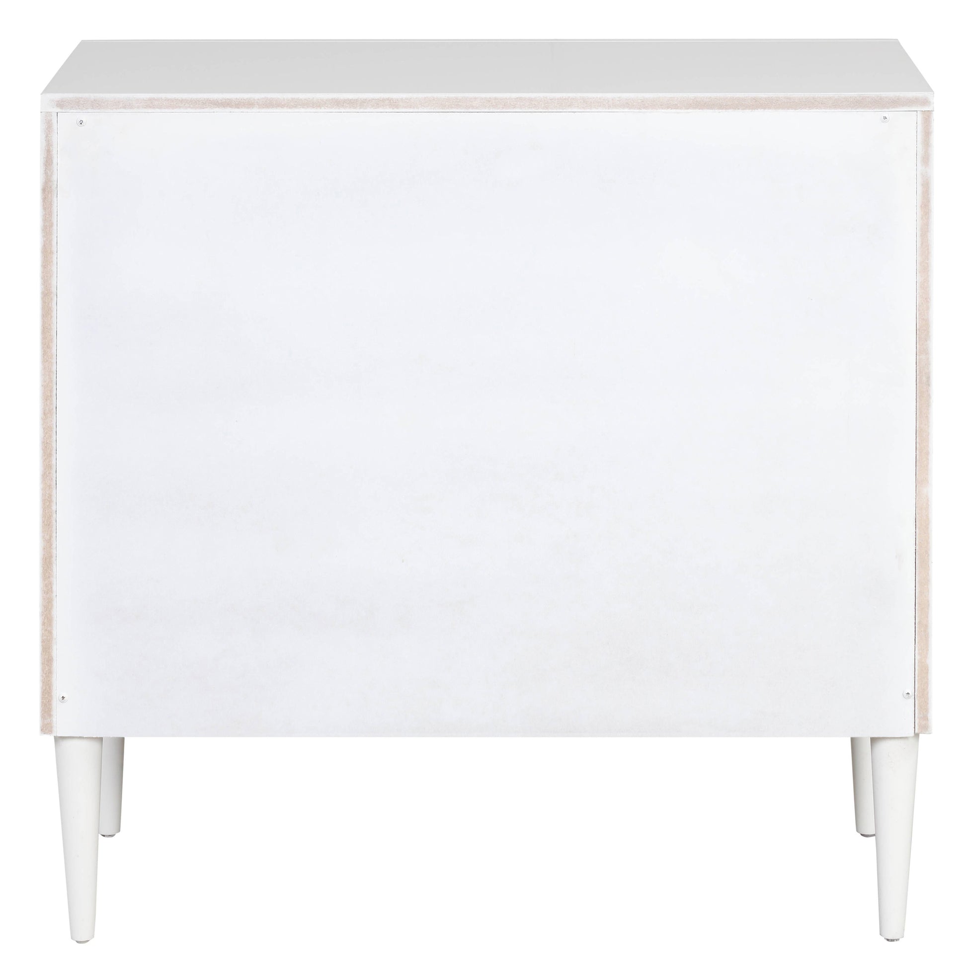 This furniture piece adds visual interest with its patterned drawer front, elevating its aesthetic appeal and style. With two drawers for convenient storage and self-closing drawer glides for smooth operation, it ensures organization and elegance, enhanced further by its wooden turned legs offering stability and aesthetic charm.