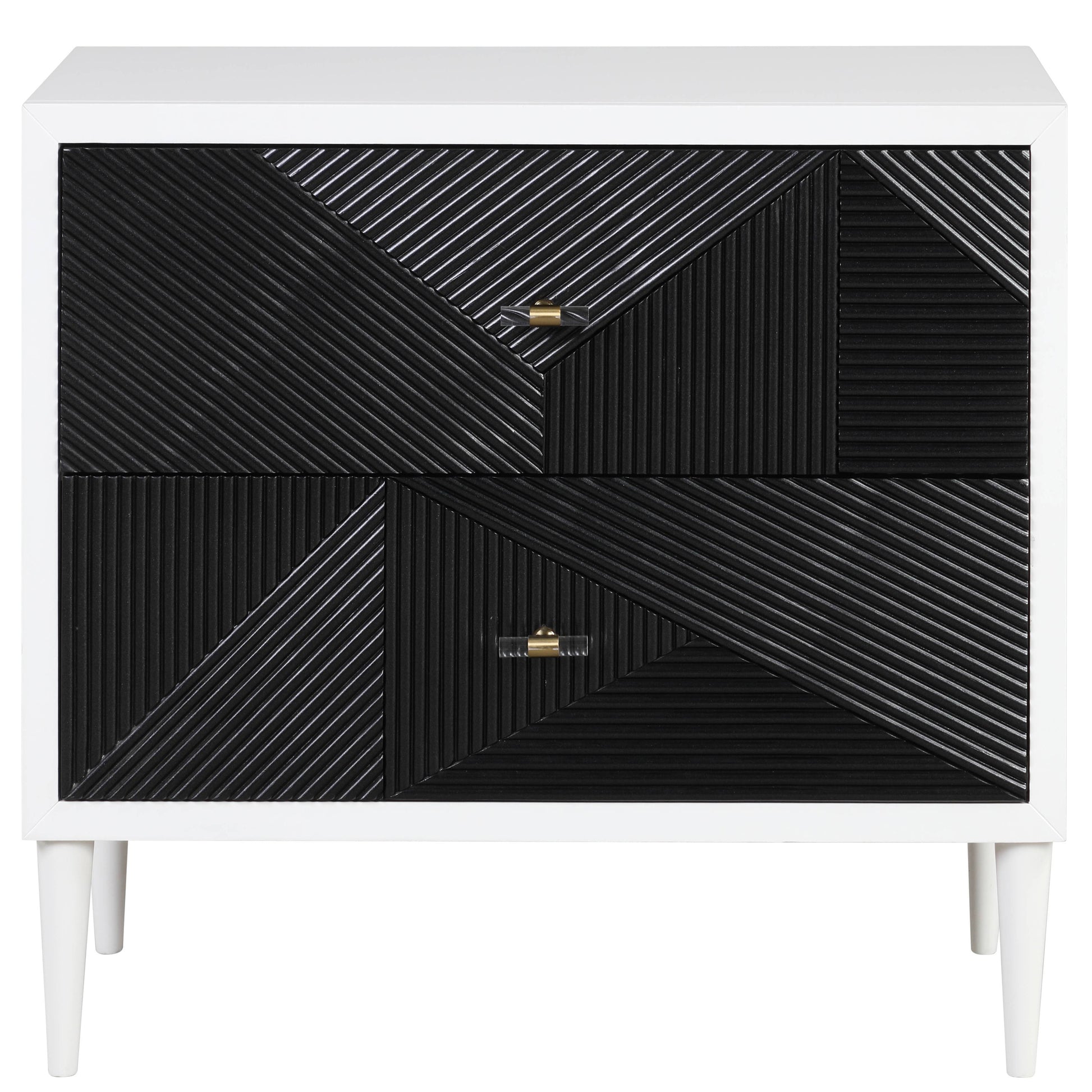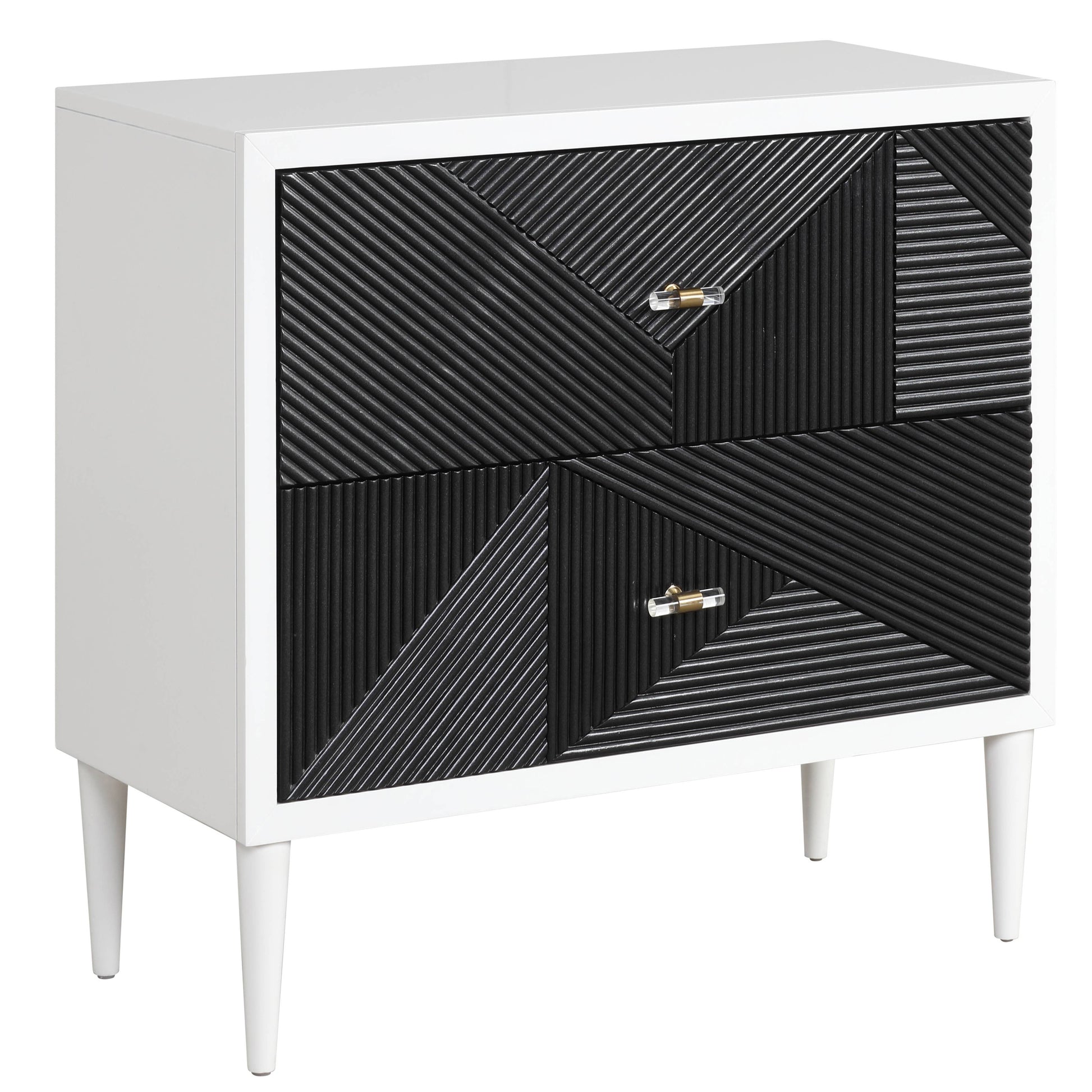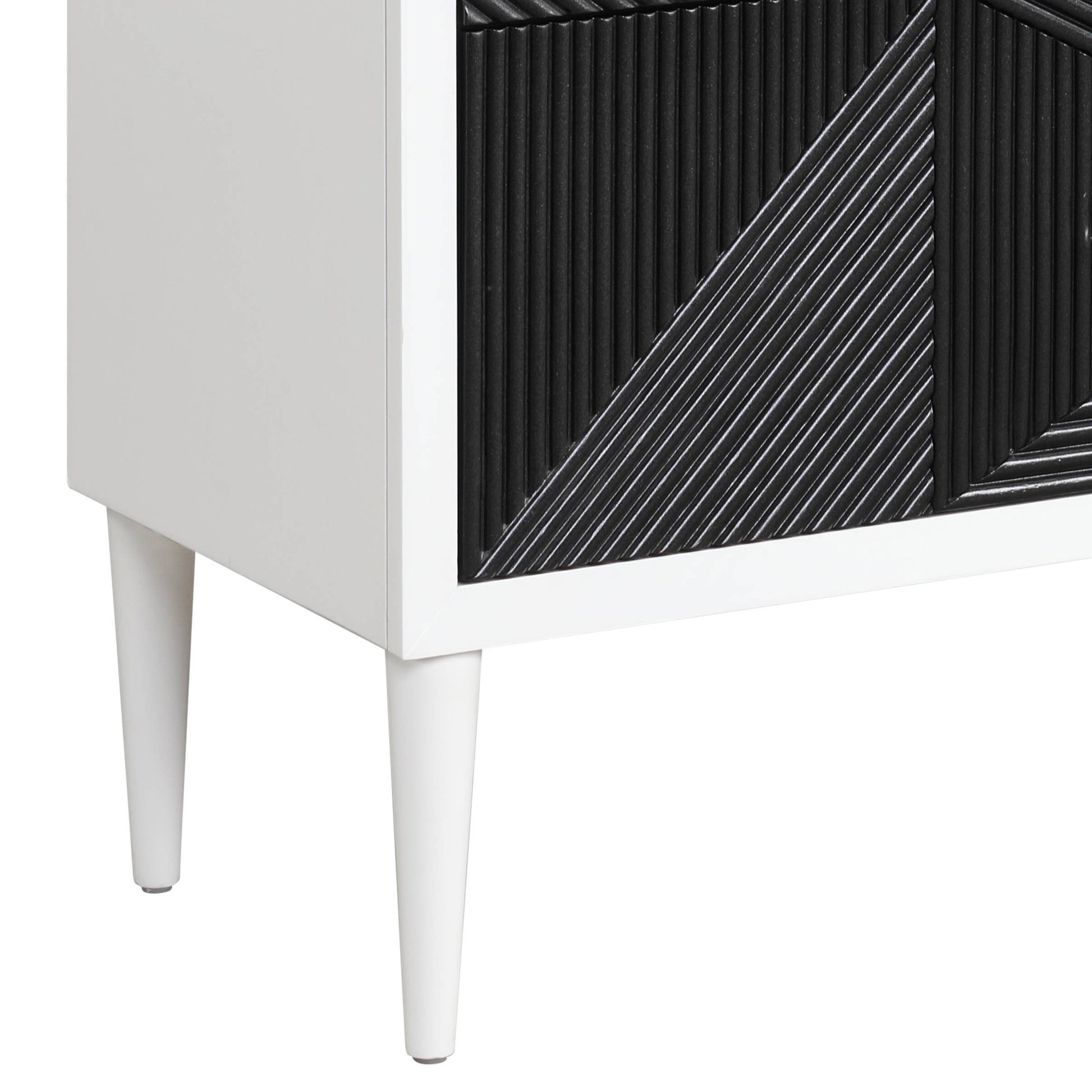 White and Black Accent Nightstand with 2 Drawers