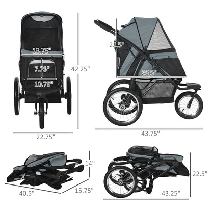 PawHut Pet Stroller for Small and Medium Dogs, 3 Big Wheels Foldable Cat Stroller with Adjustable Canopy, Safety Tether, Storage Basket, Gray