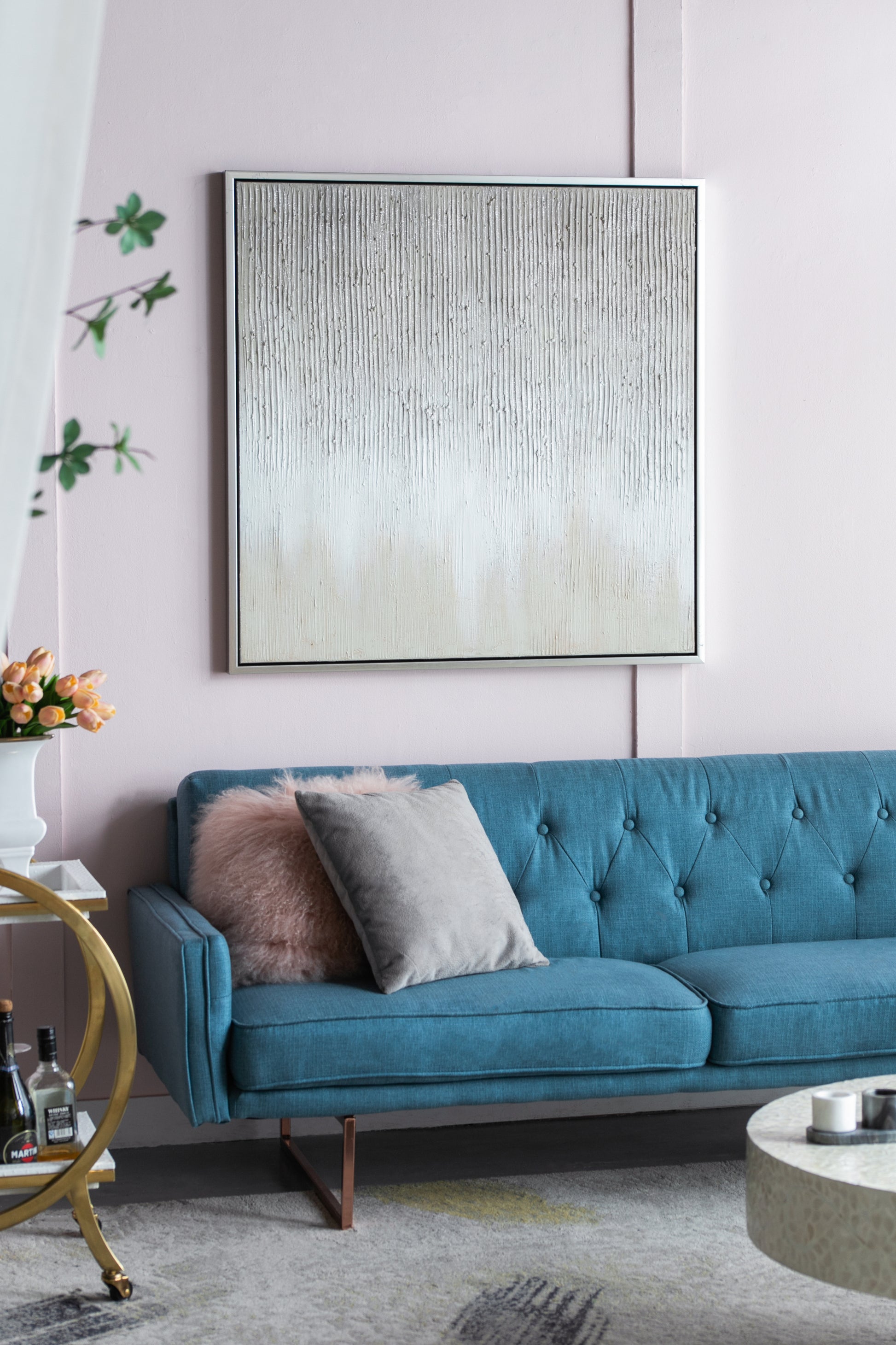 - Canvas is stretched on a solid timber stretcher bar and framed with black plastic frame